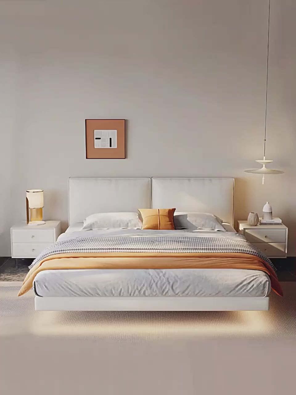 Suspended modern minimalist 304 Stainless Steel frame Vein Ices leather bed XMSY10