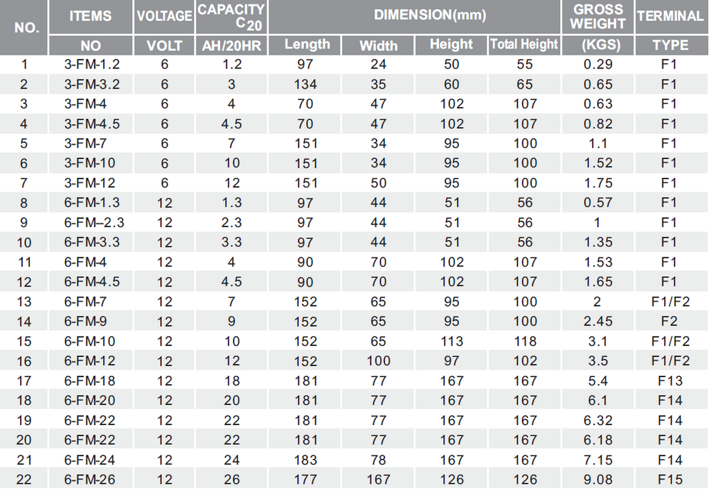 Valve Regulated Lead Acid Battery Model:6-FM-26