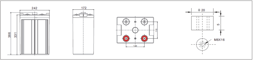 Capacity:500AH Voltage:2V
