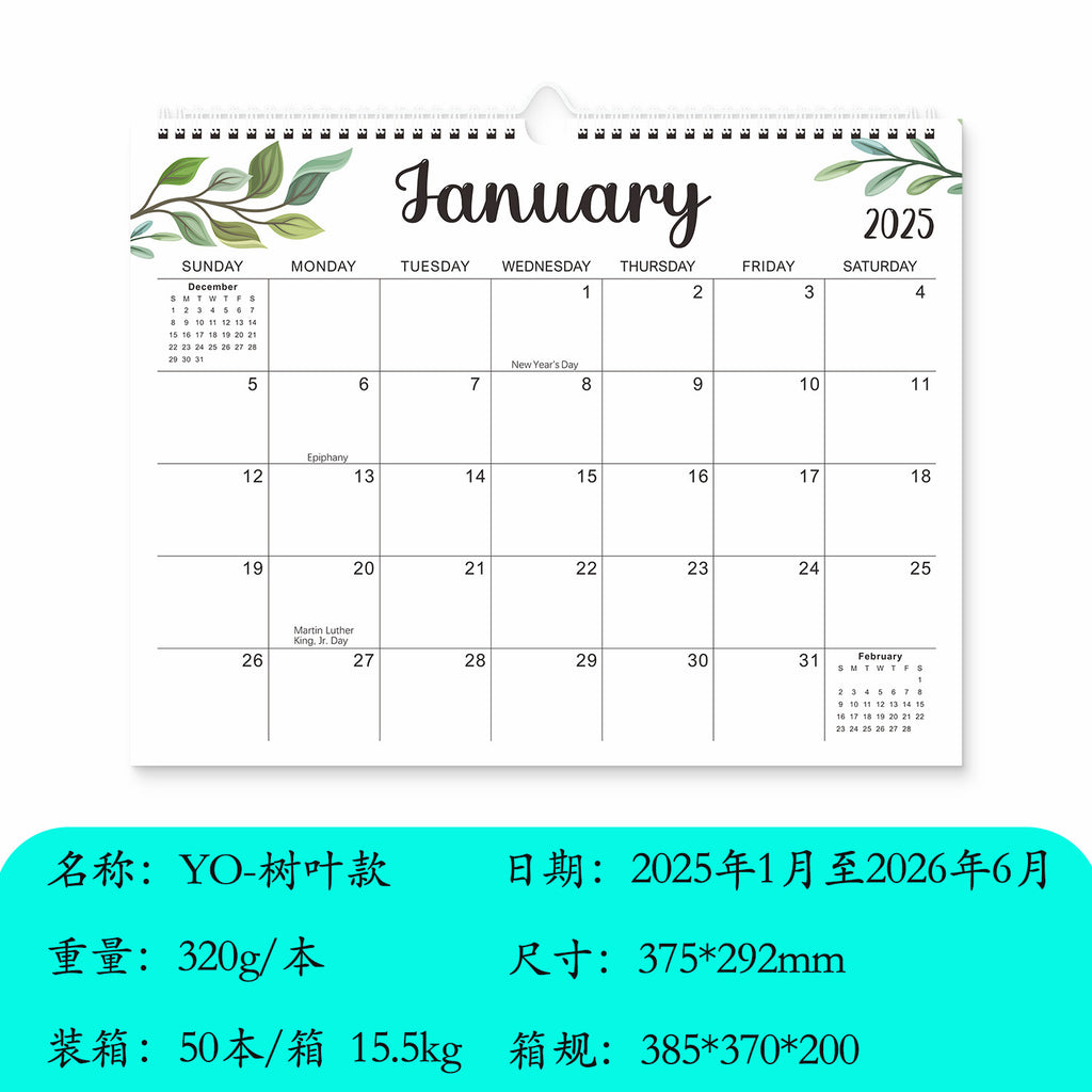Amazon Cross-Border 2025 English Creative Simple Yo Coil Wall Calendar Ins Style Modern Desk Calendar Schedule Notes