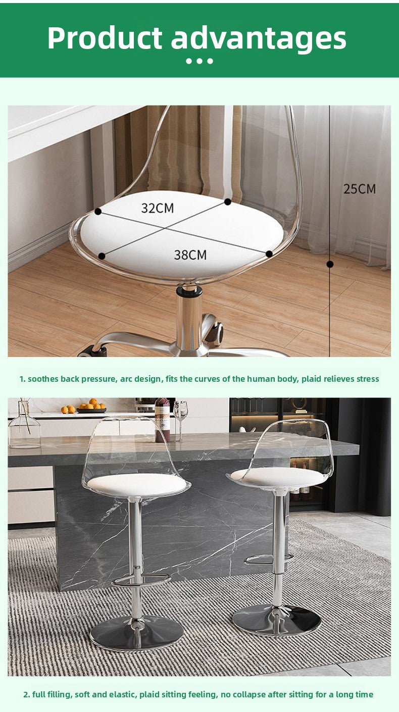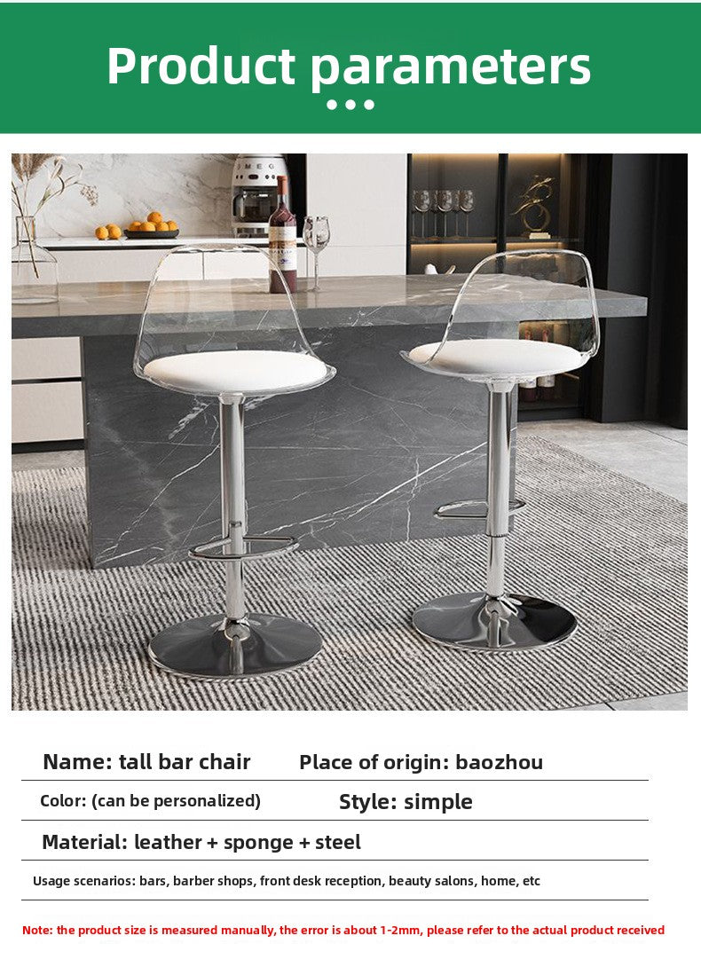 Bar Stool Light Luxury Acrylic Transparent Bar Chair Adjustable Rotating Home High Stool Company Front Desk Bar Chair