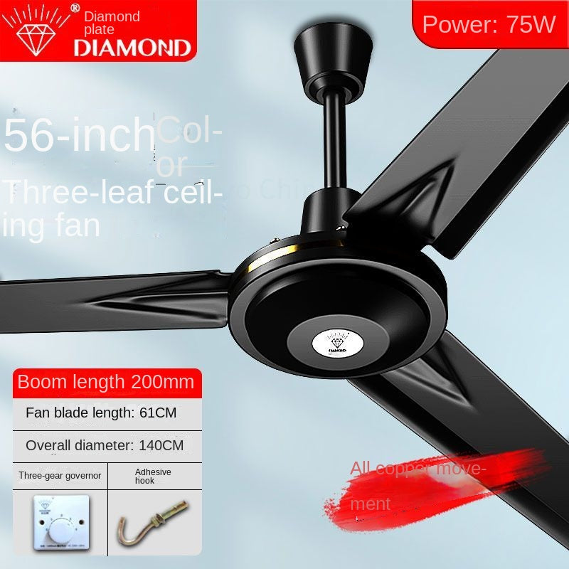 Diamond Ceiling Fan 56inch 3 metal blades alluminium/copper motor