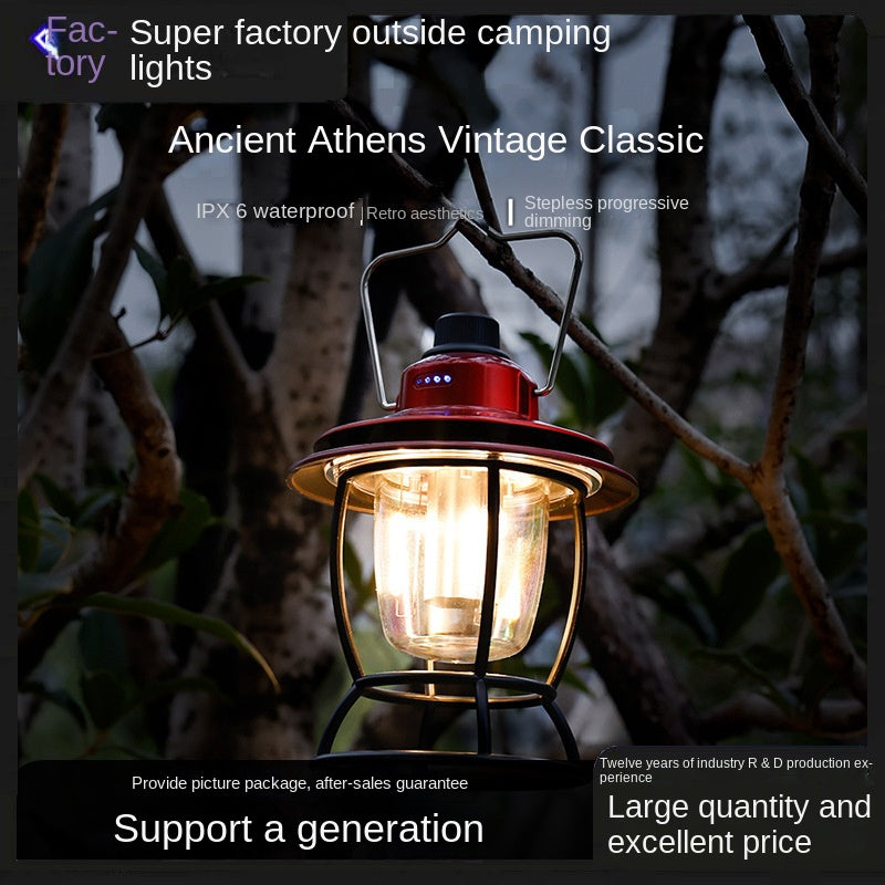 Camping Lantern Charging Retro Barn Lantern Outdoor Multifunctional Camping Lamp Tent Light Portable Lamp Electrodeless Dimming Ambience Light