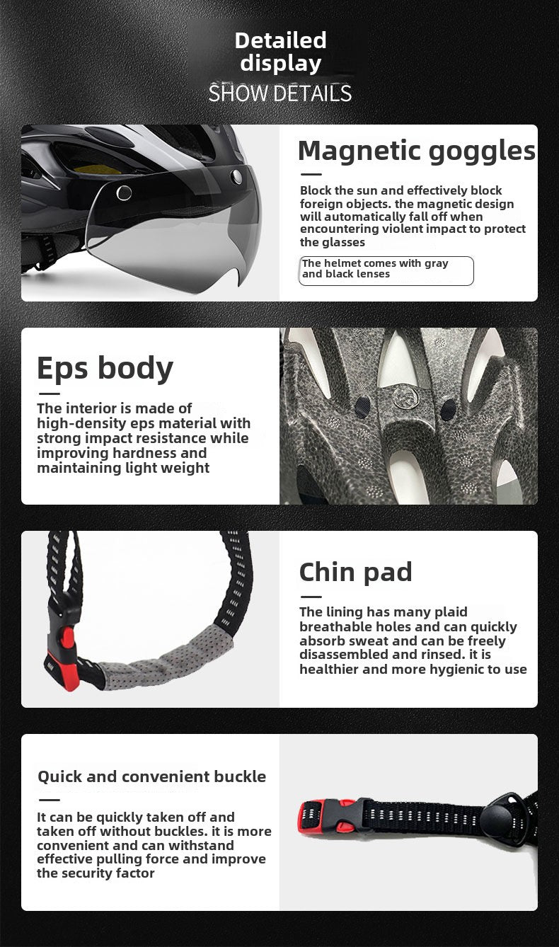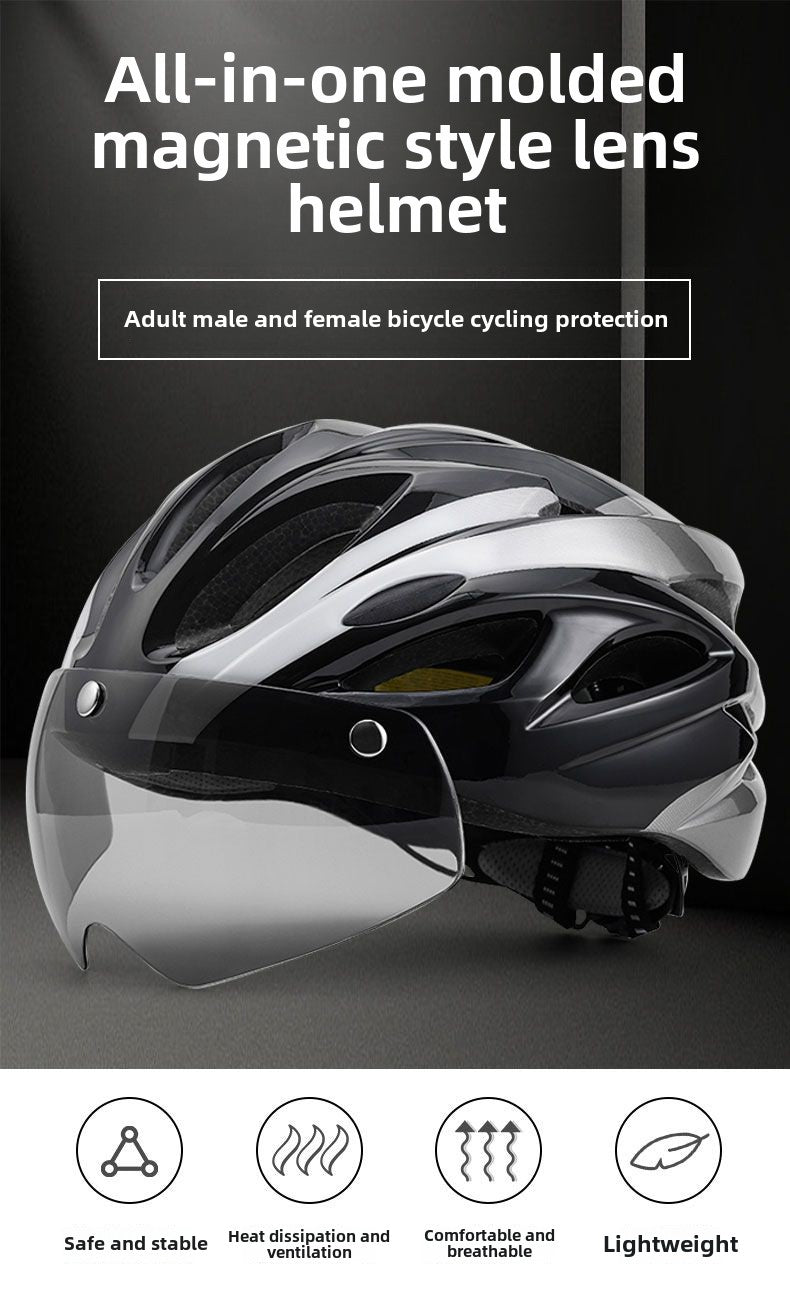 Ce Riding Helmet Magnetic Suction Goggles Men's and Women's Summer Road Safety Hat with Brim Integrated Molding Breathable Handsome