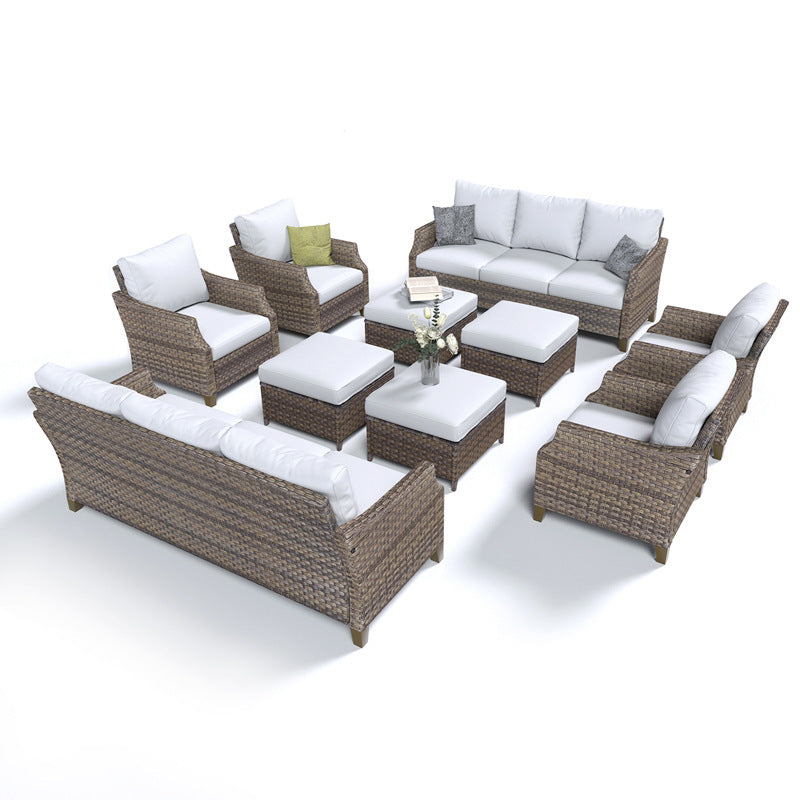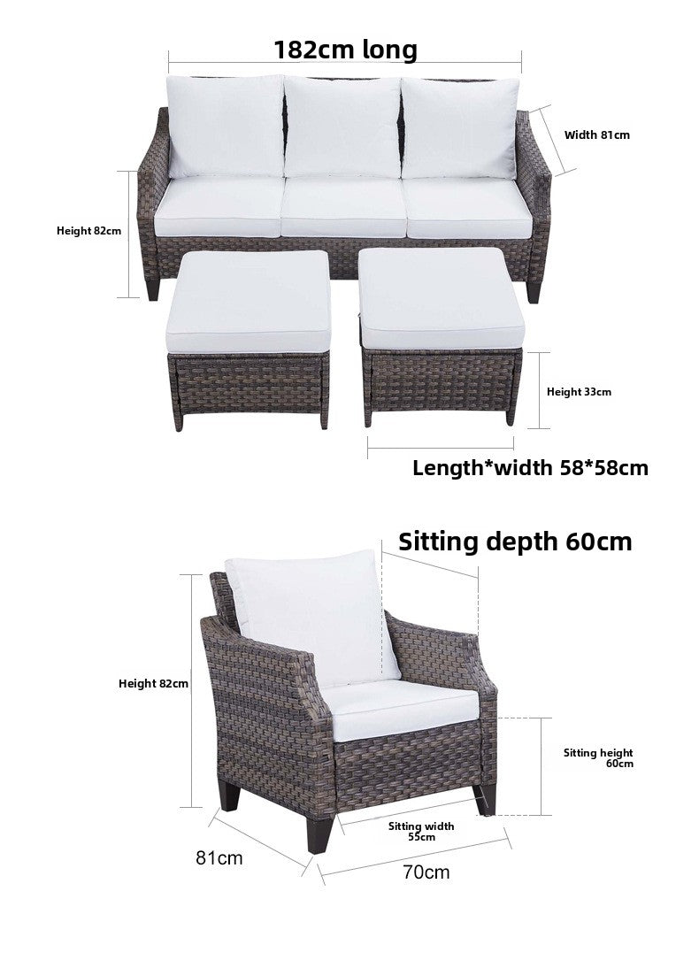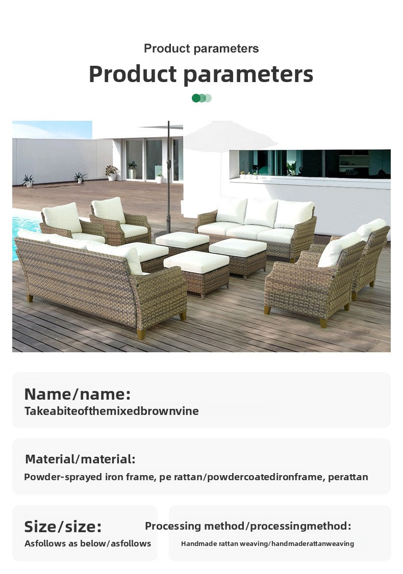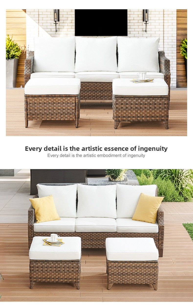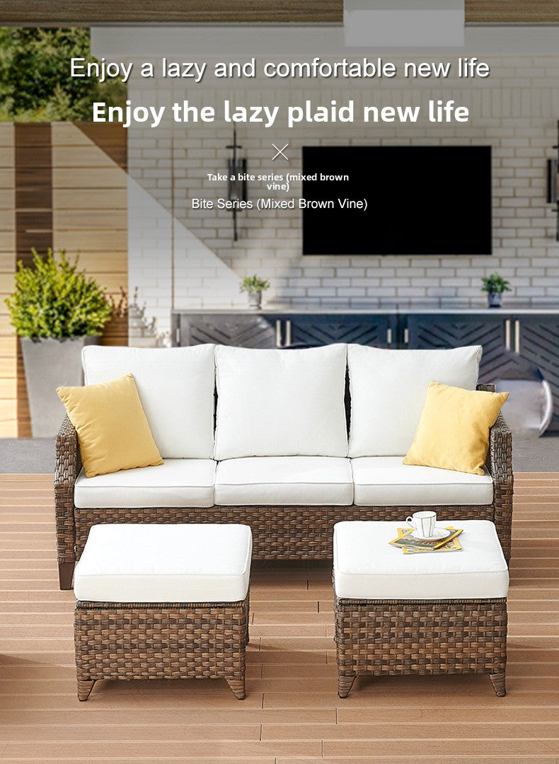 Cross-Border Outdoor Rattan Sofa Set Courtyard Combination Sunproof Waterproof Three-Person Rattan Chair Outdoor Furniture Garden Sofa