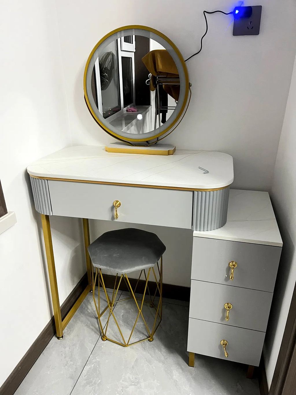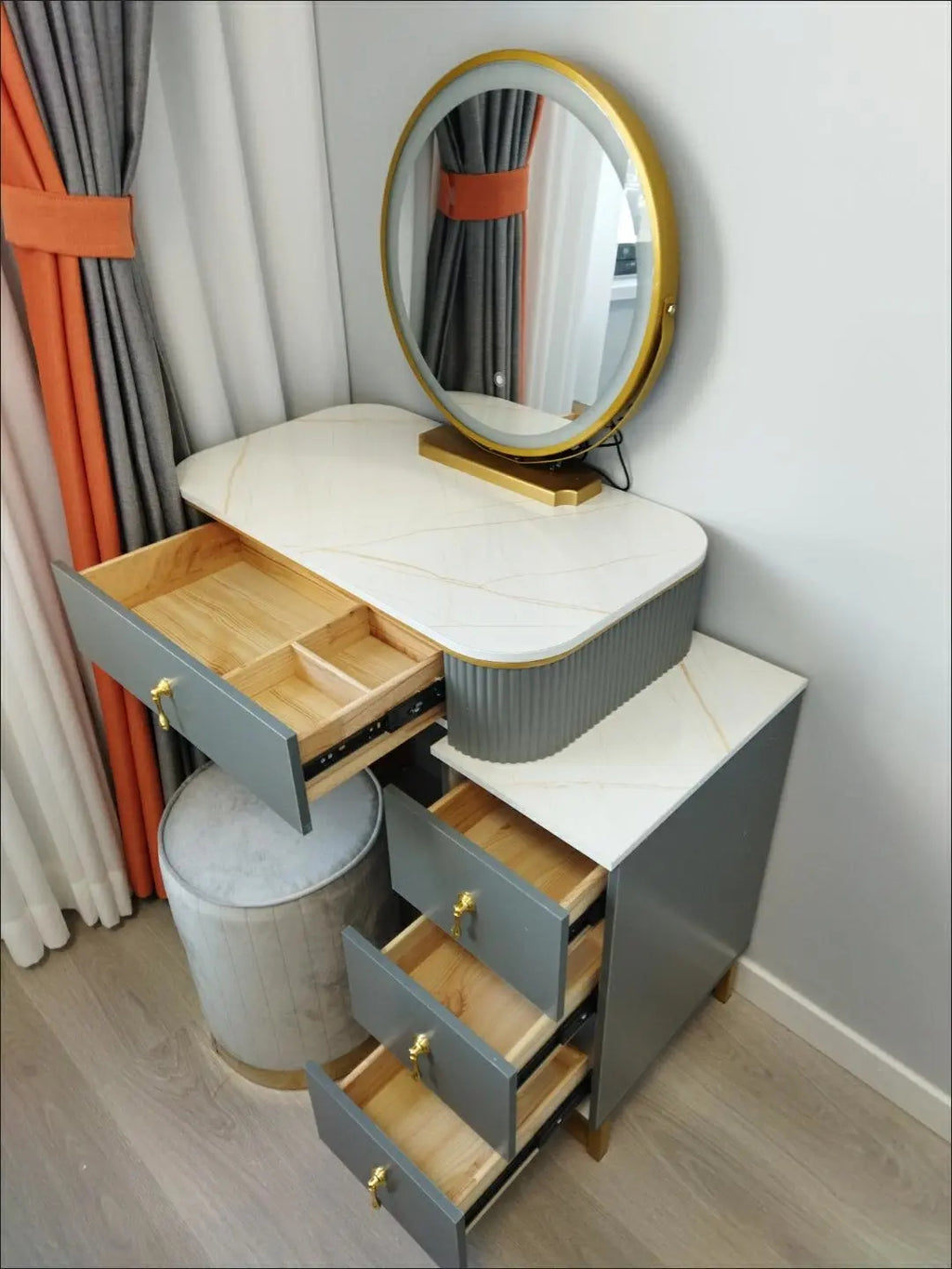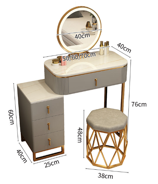including : dressing table, mirror, Chair , and storage cabinet