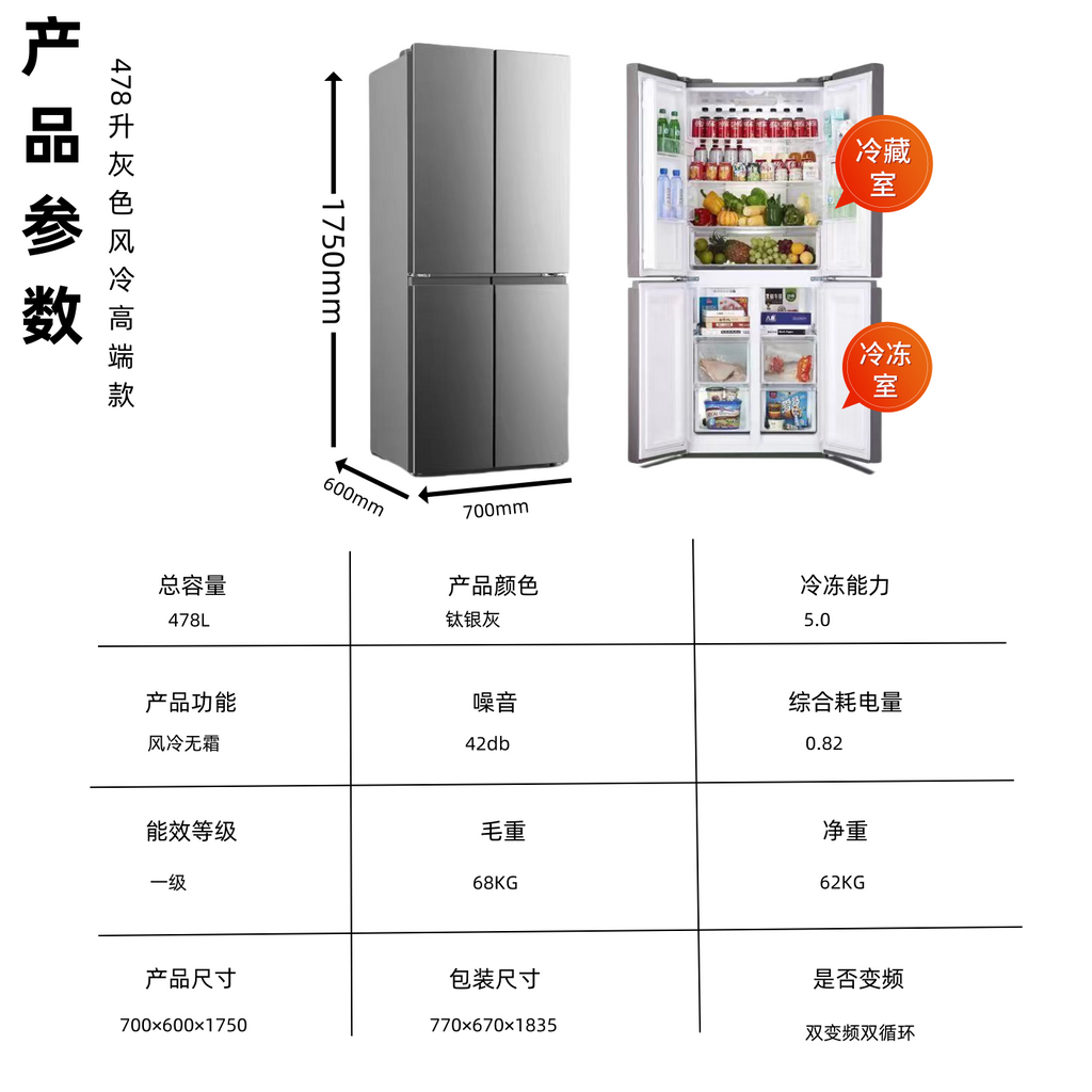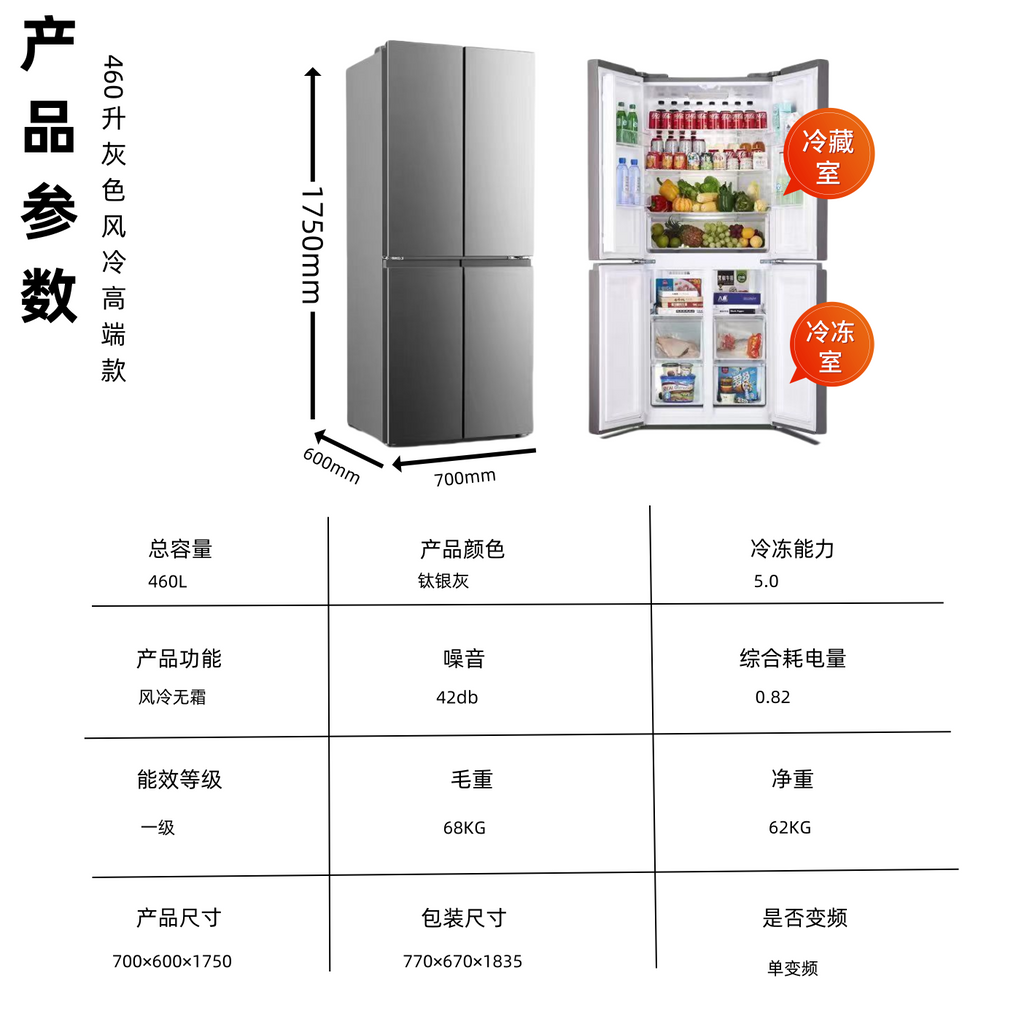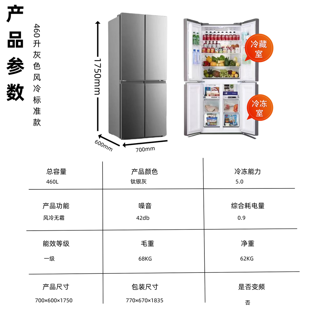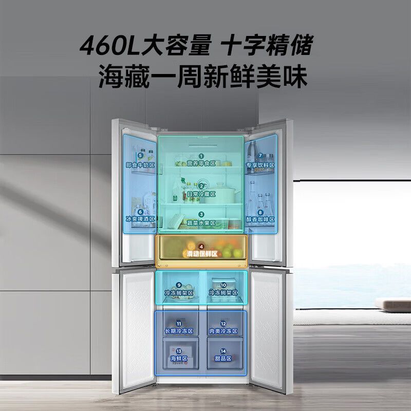 Duck 438/460 Four-Door Cross Air-Cooled Uniform Cooling Ultra-Thin First-Class Variable Frequency Household Large Capacity Multi-Door Refrigerator