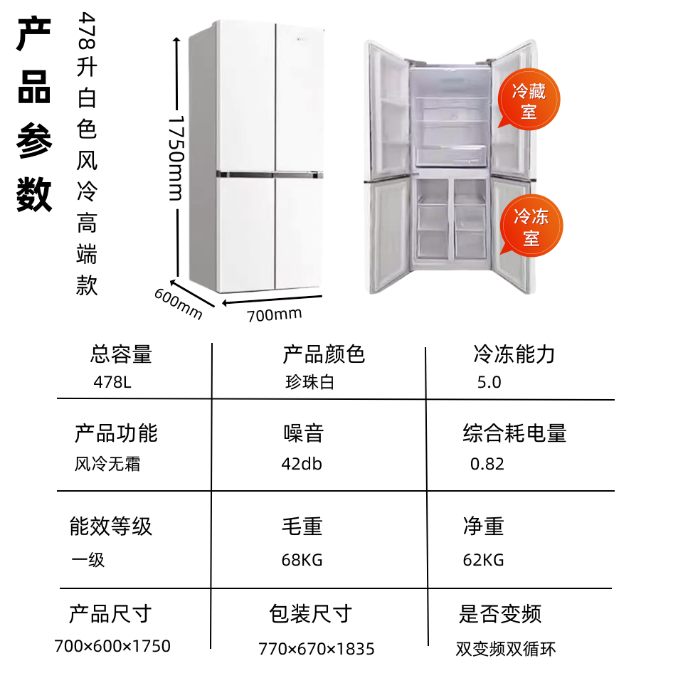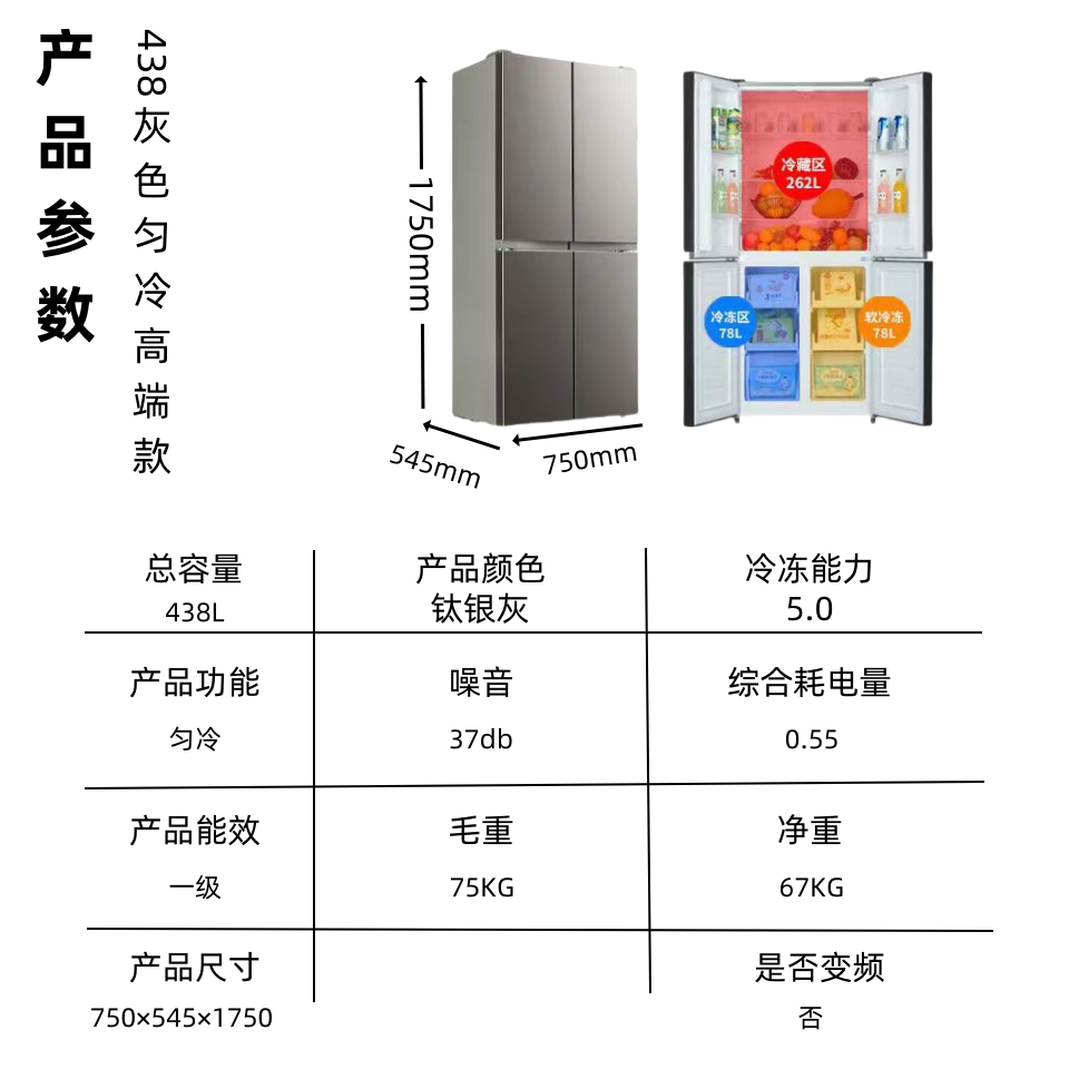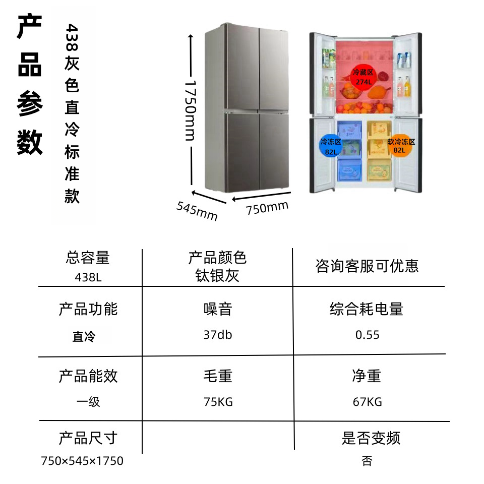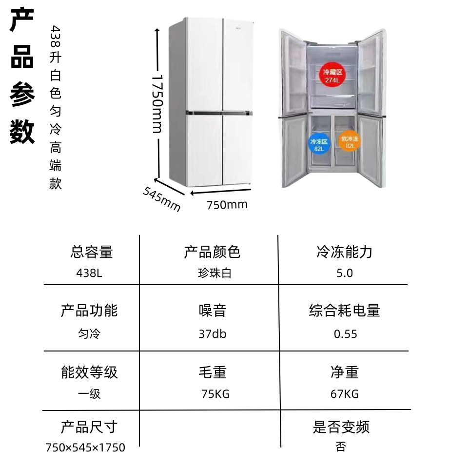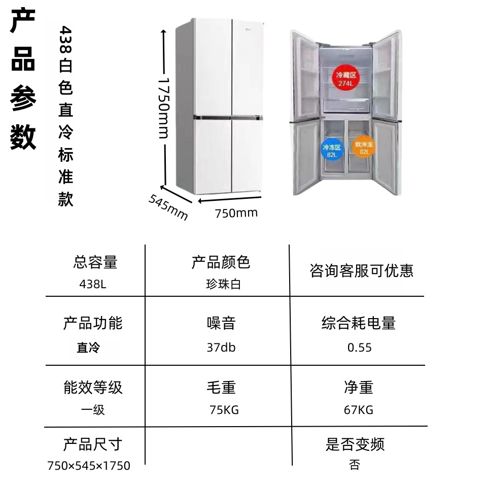 Color: 438 Elegant White Four-Door Three-Temperature Direct Cold Style