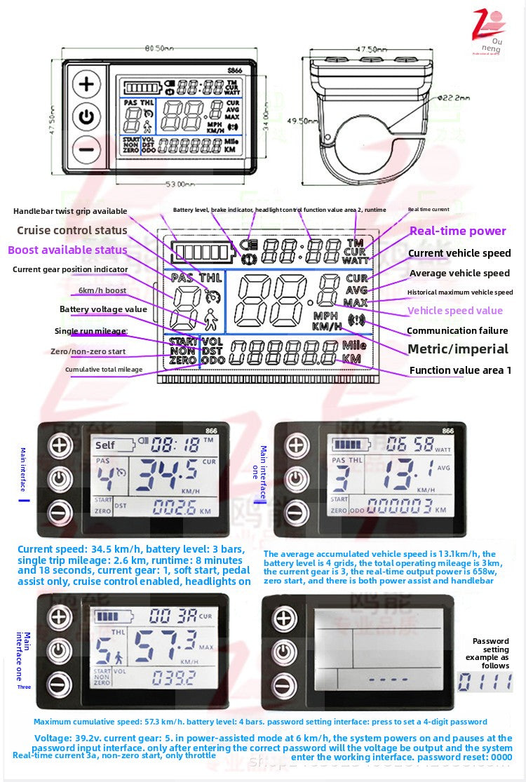 Electric Bicycle Mountain Bike Scooter LCD Liquid Crystal Instrument