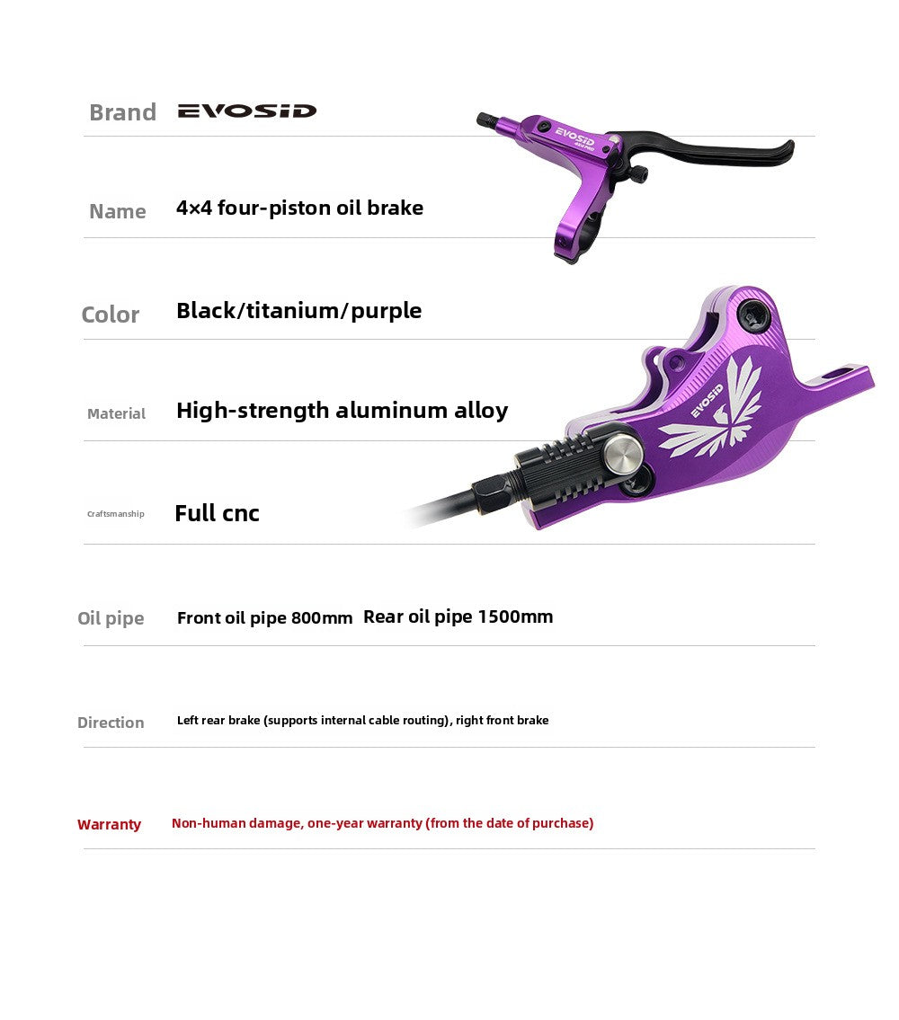 EVOSID Four-Piston Oil Brake Mountain Bike Oil Disc CNC Aluminum Alloy Internal Cable Routing Downhill DH/XC Hydraulic Disc Brake
