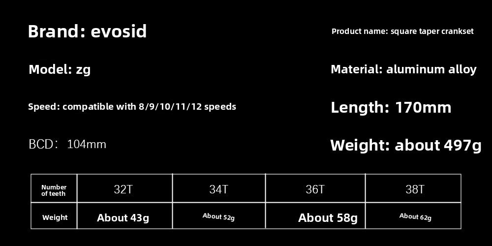 EVOSID Mountain Bike Crankset 104BCD Square Hole Crank 8/9/10/11/12 Speed Modified Single Chainring
