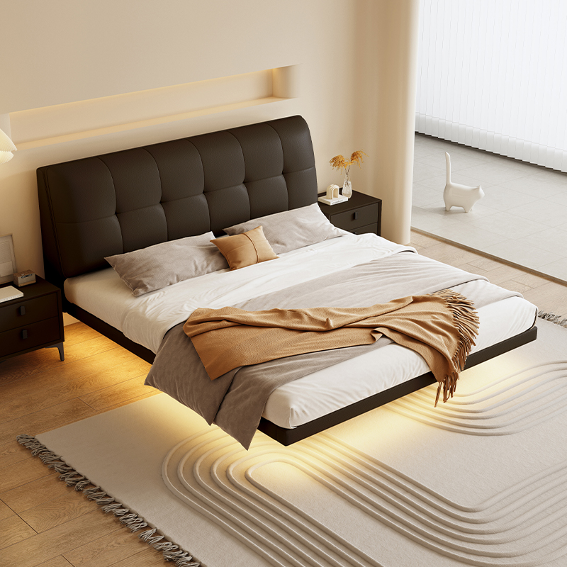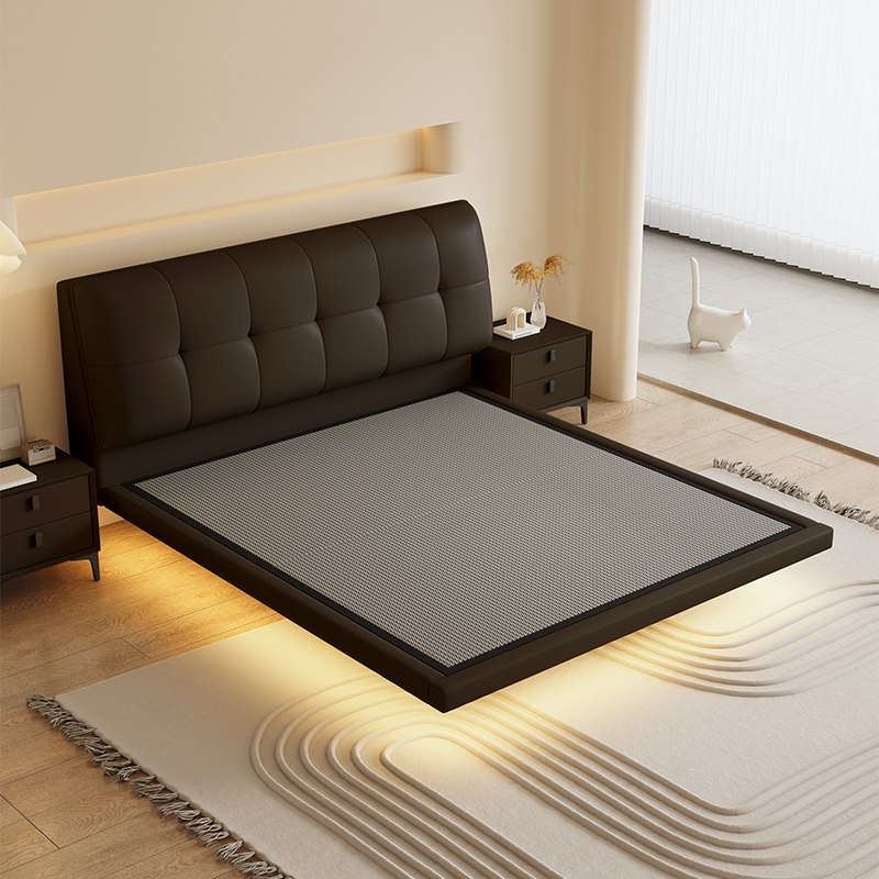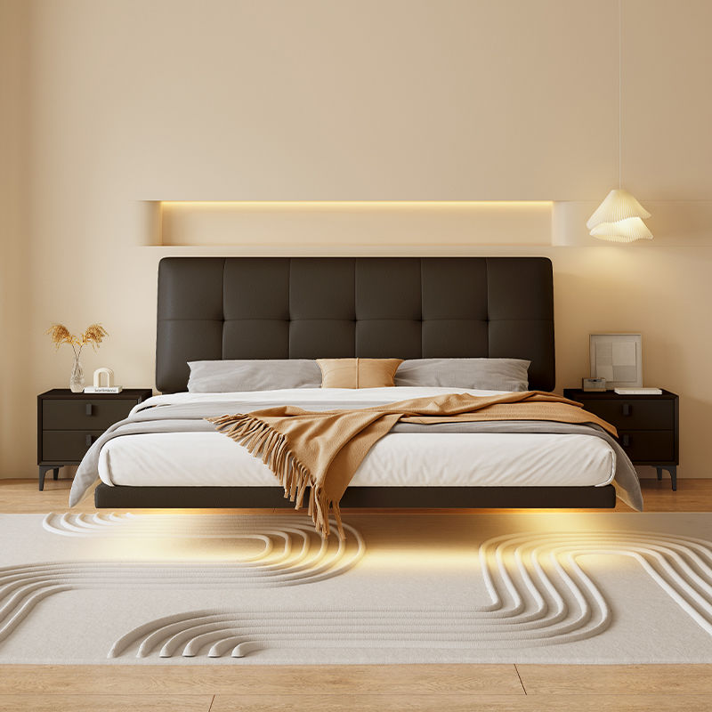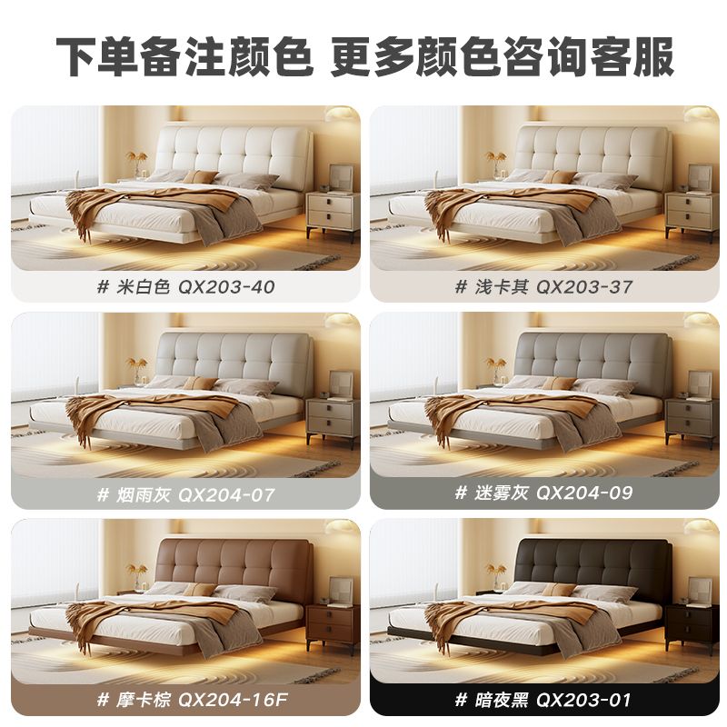 Feimashi Cream Style Leather Bed Modern Minimalist Bed in Master Bedroom Double 1.8X2 M Small Apartment 1.5 M Suspension Bed