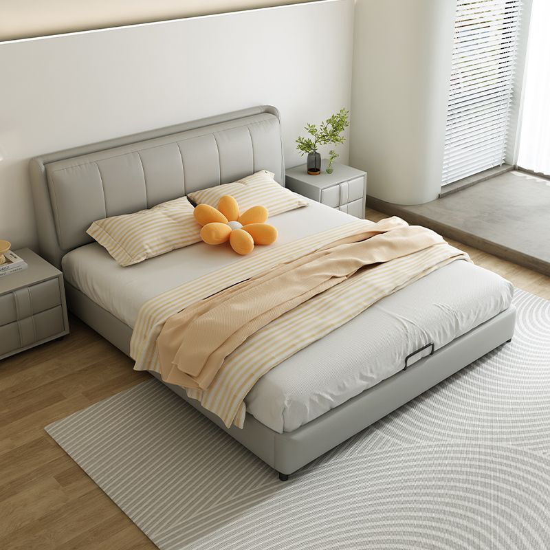 Feimashi Leather Bed Modern Minimalist Bed 1.5 M Double 1.8X2 M Italian Marriage Bed Soft Pack Bed Bed in Master Bedroom