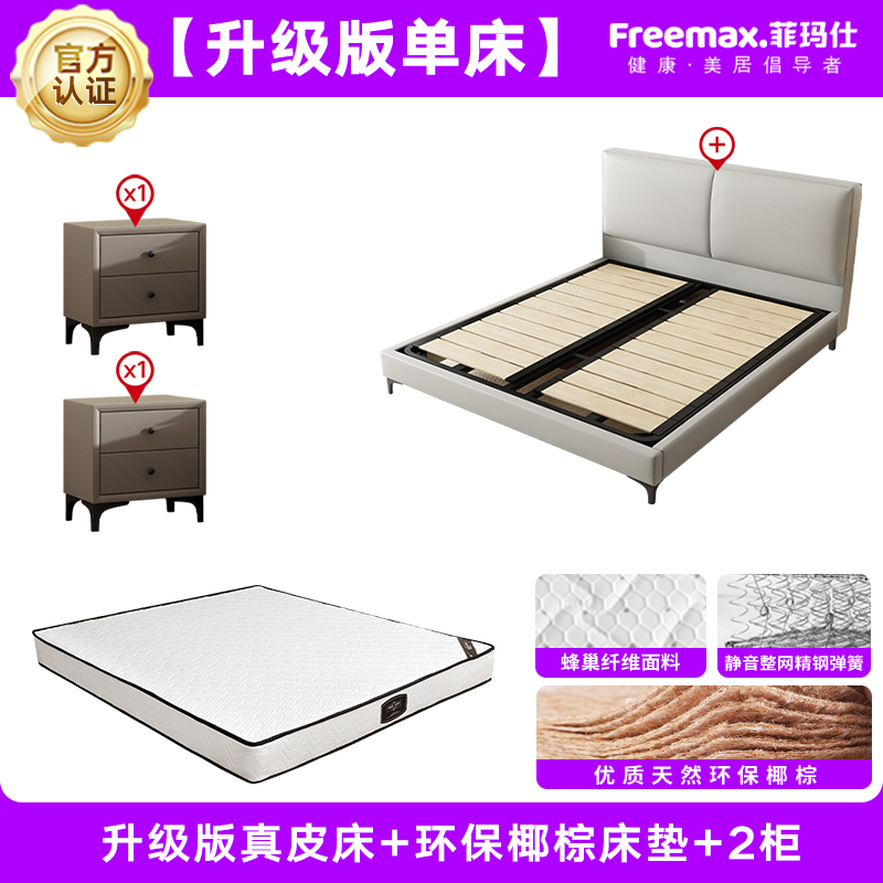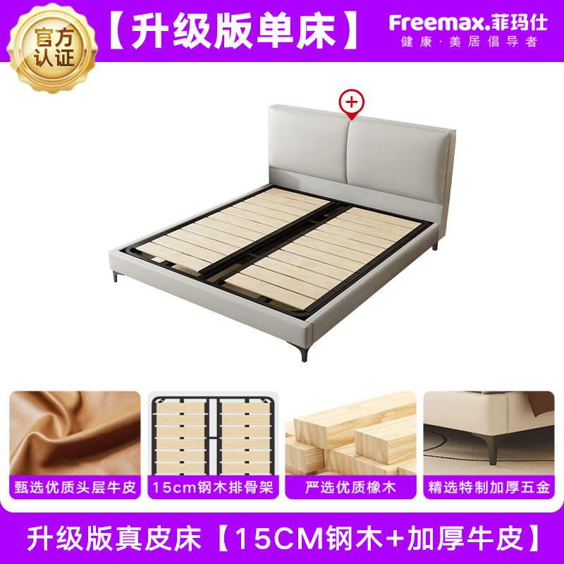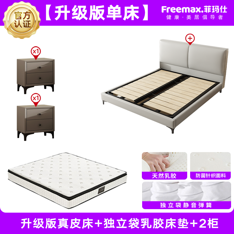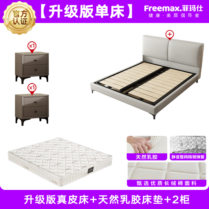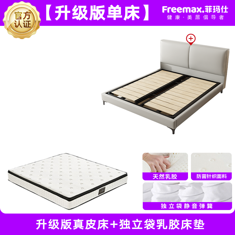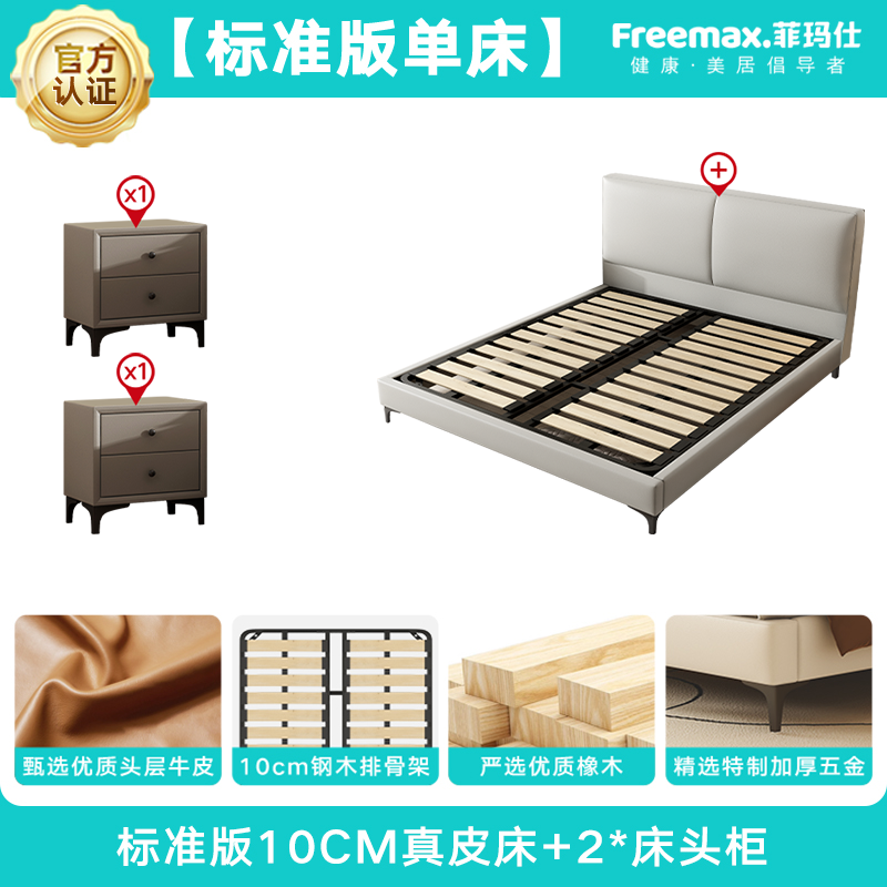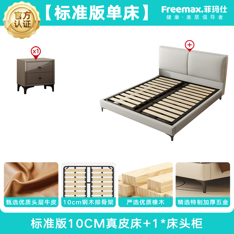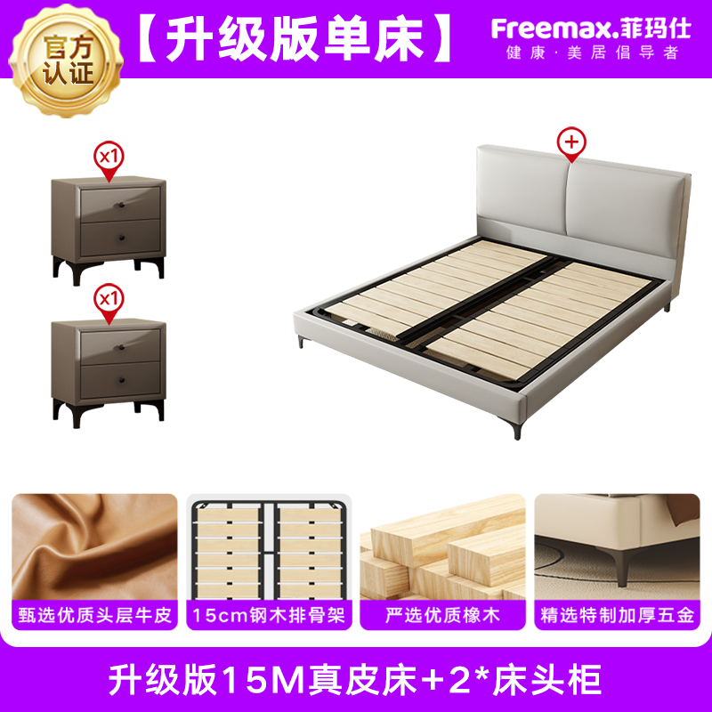 Feimashi Leather Bed Modern Minimalist Bed Double 1.8X2 M Bedroom Minimalist 1.5 M Household High-End Marriage Bed