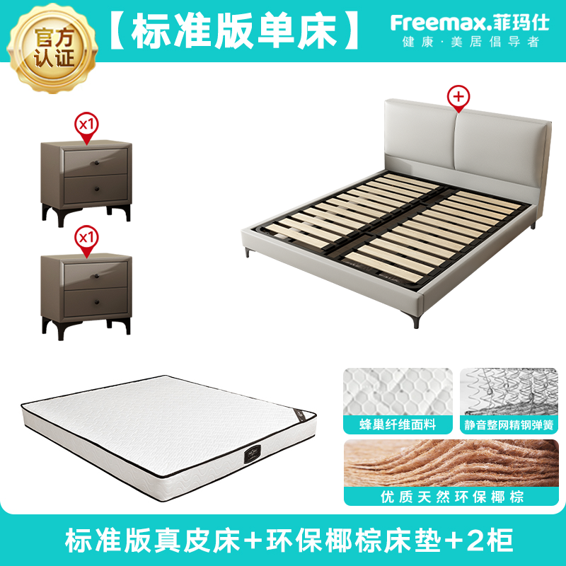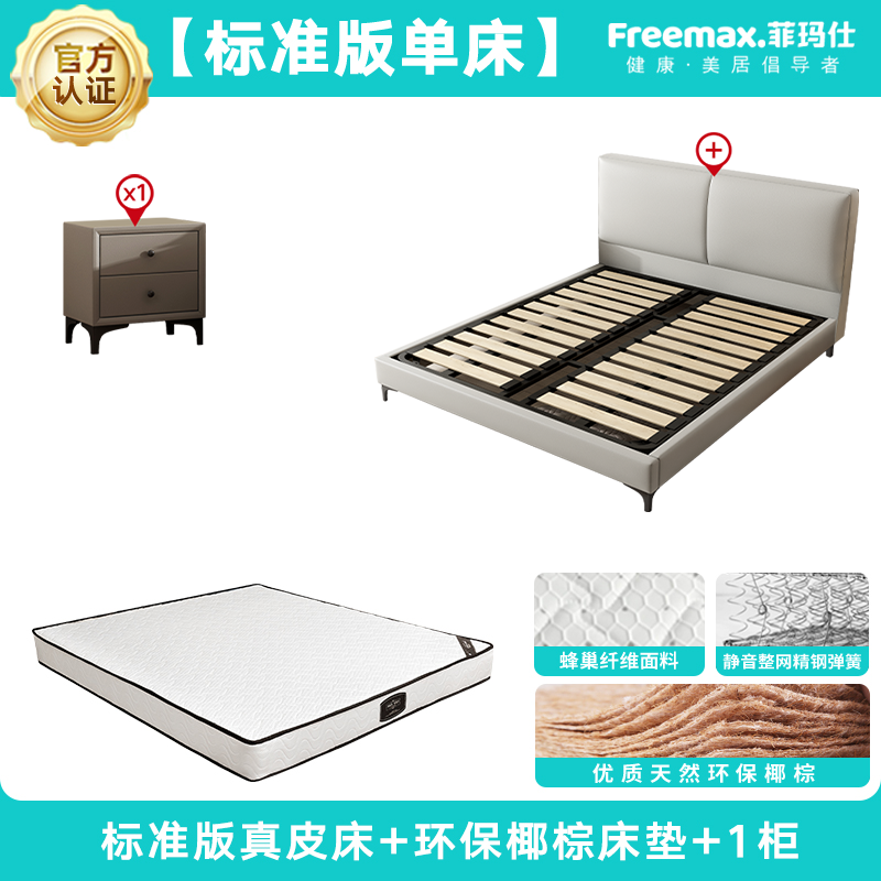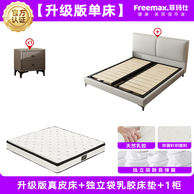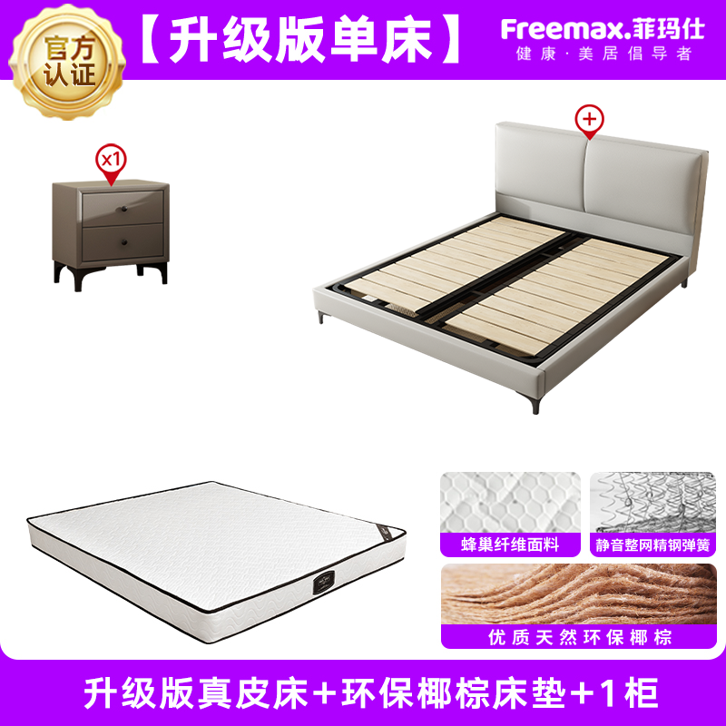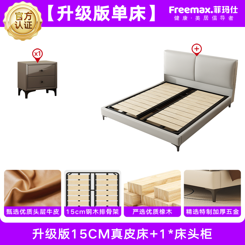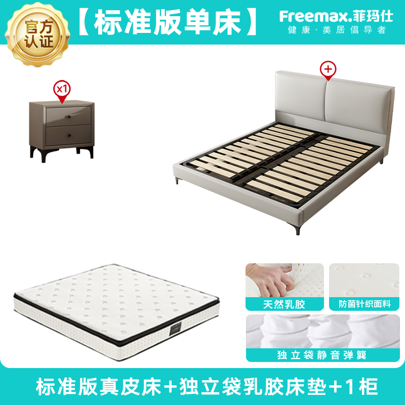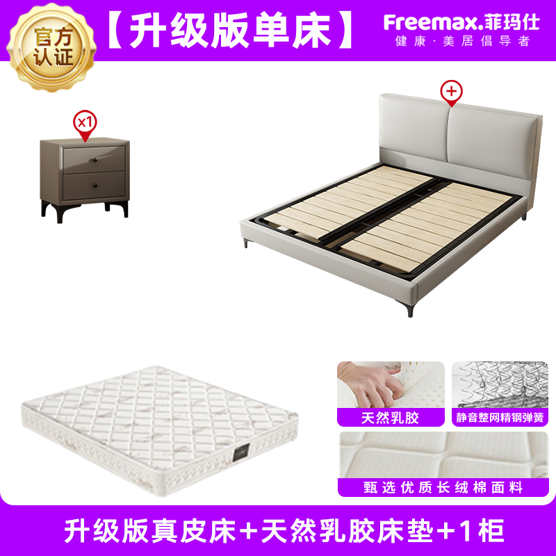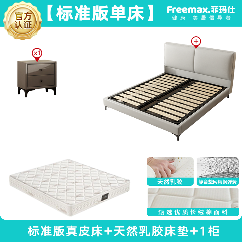 Feimashi Leather Bed Modern Minimalist Bed Double 1.8X2 M Bedroom Minimalist 1.5 M Household High-End Marriage Bed