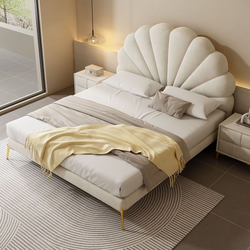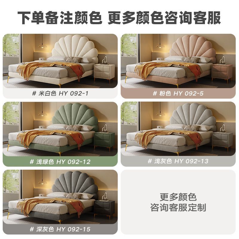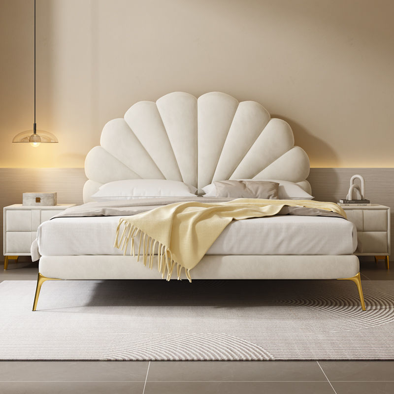Feimashi Technology Velvet Bed Modern Simple and Light Luxury Fabric Bed Cream Style Master Bedroom Double Bed Nordic Fabric Bed