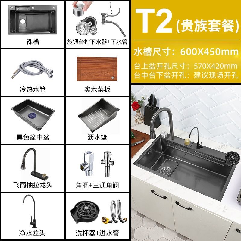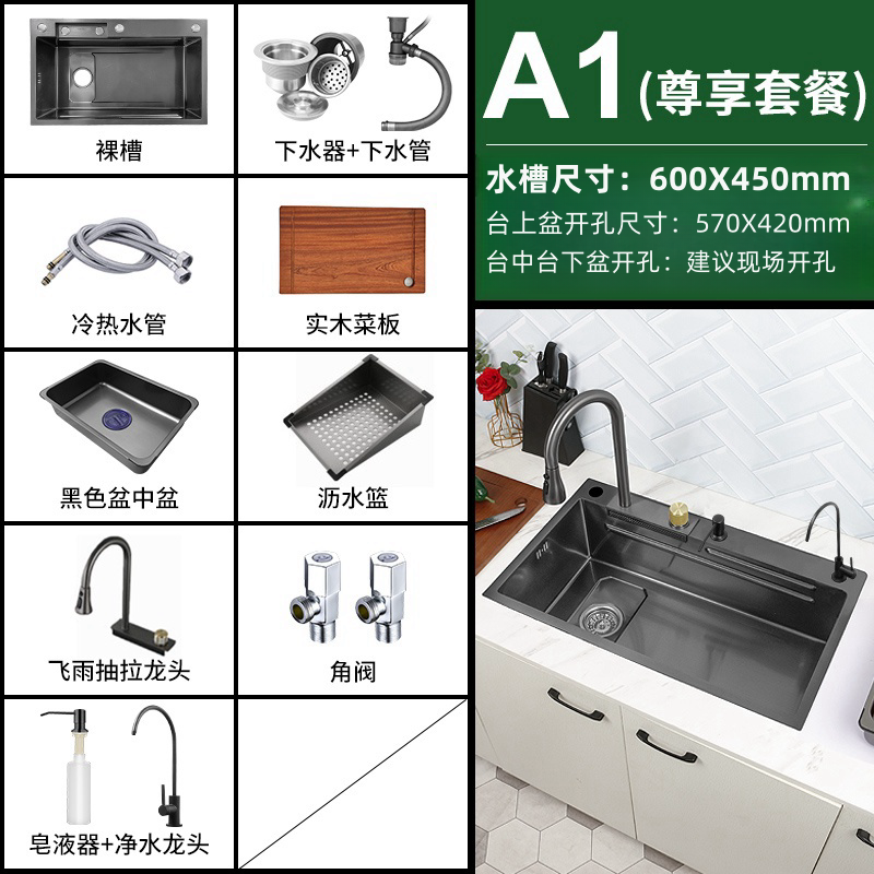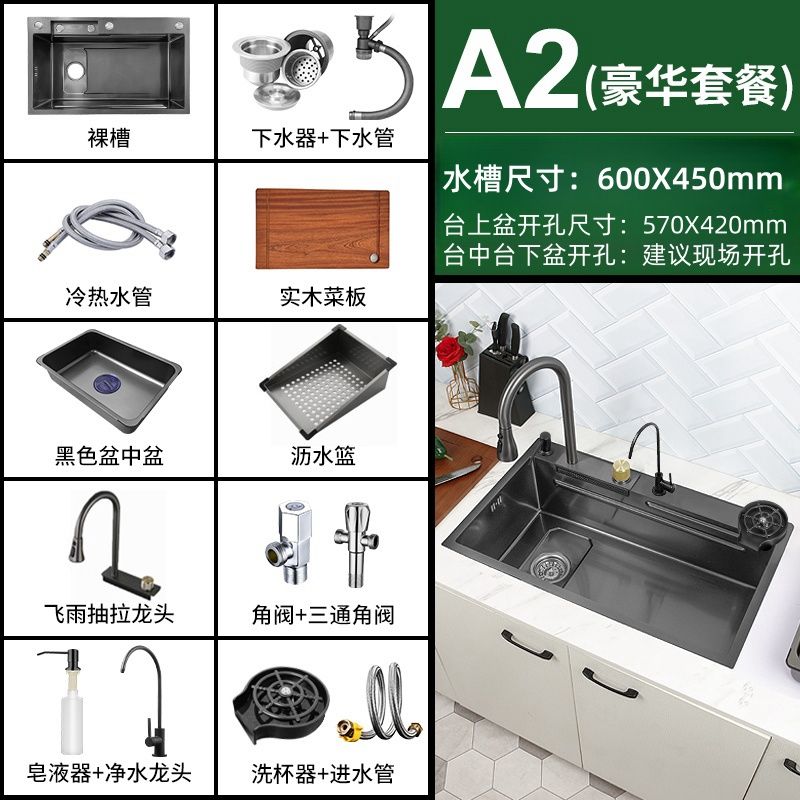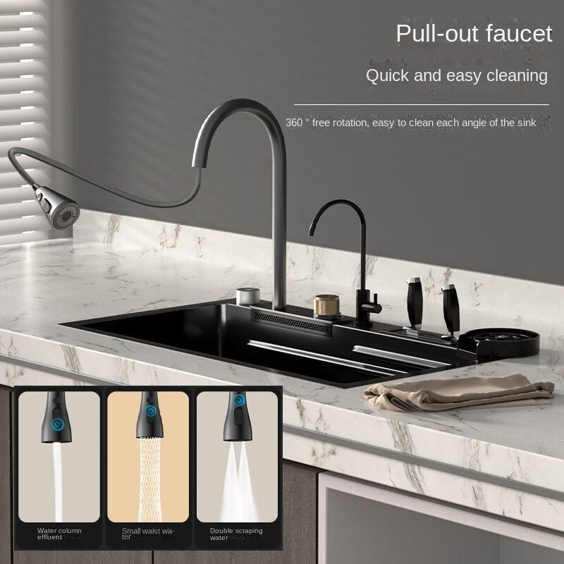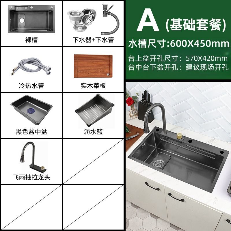 Feiyu Waterfall Sink Kitchen Vegetable Basin Large Single Sink 304 Stainless Steel Household Drop-in Sink Scullery Sink