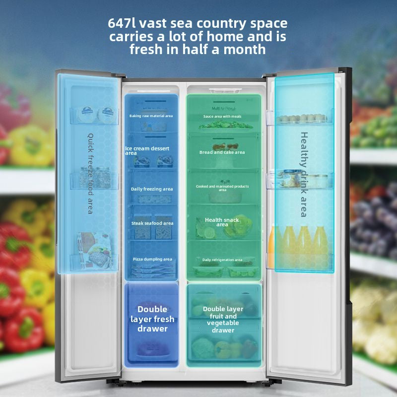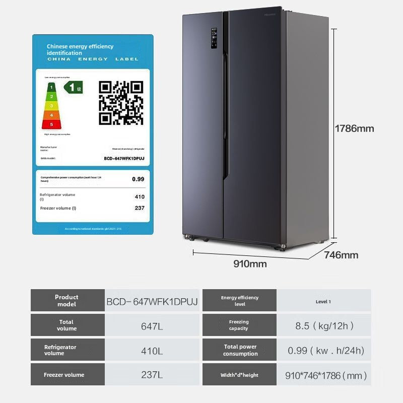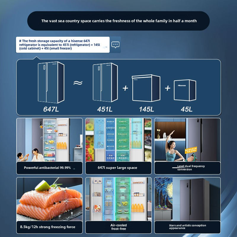 Hisense 647 Liters Double-Door Refrigerator First-Class Double Frequency Conversion Energy Saving Large Capacity Air Cooling Frostless Household Refrigerator