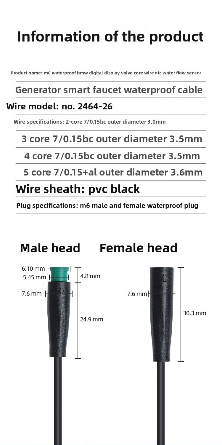 IP65 Waterproof M6 Connector for Ebike LED Light & NTC Sensor Integrated Wiring Harness Electric Bicycle Quick Plug