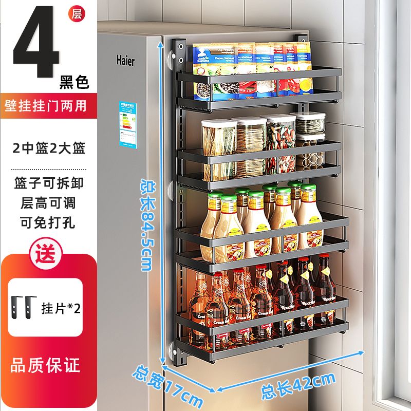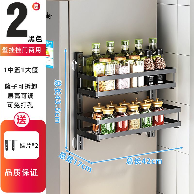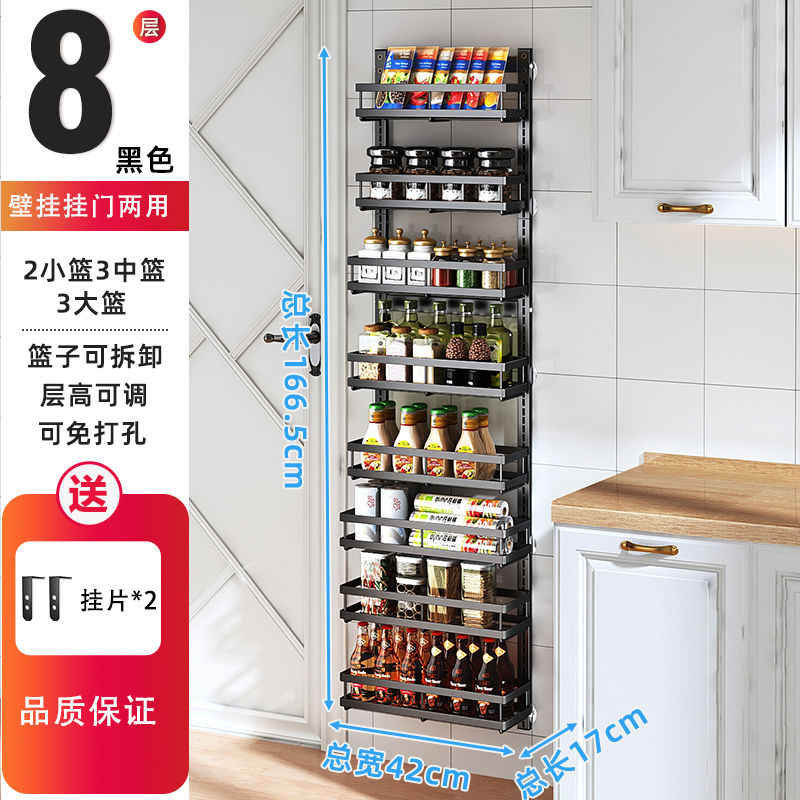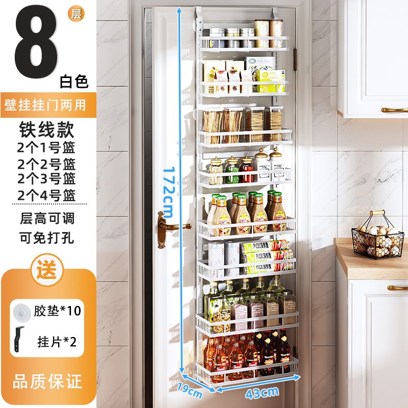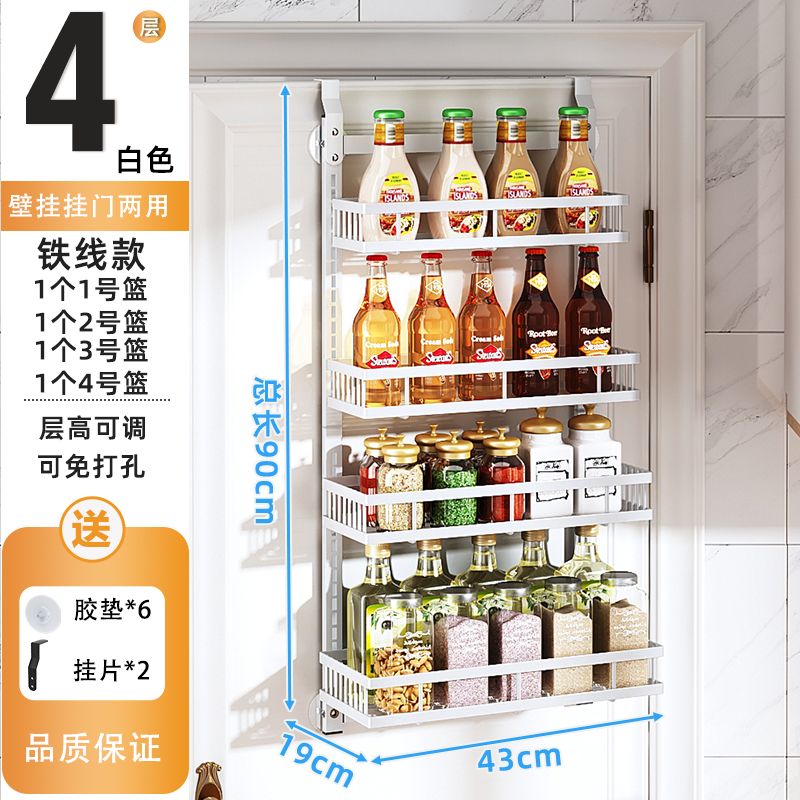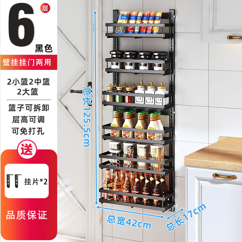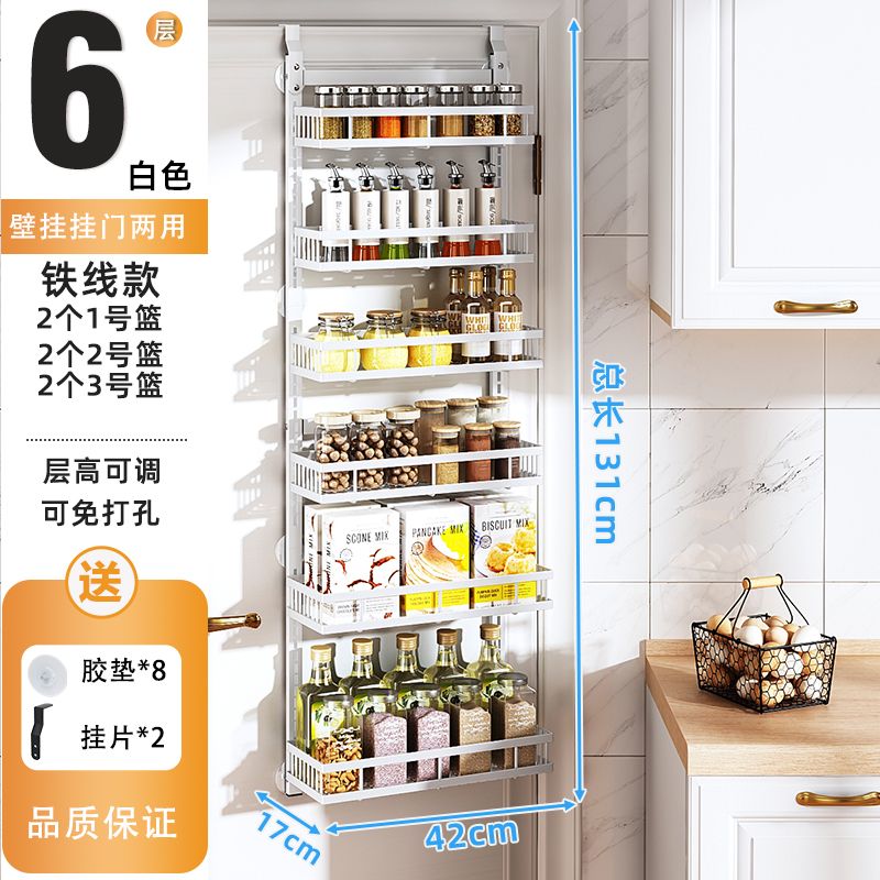 Kitchen Seasoning Wall-Mounted behind the Door Rack-Storey Adjustable Storage Rack Living Room Wall-Mounted Punch-Free Snack Storage Rack
