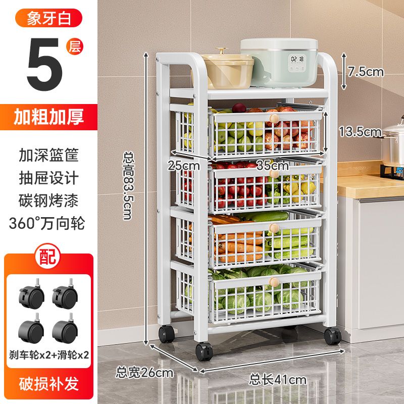 Kitchen Vegetable Storage Storage Rack Multi-Functional Snack Storage Basket Floor Multi-Layer Pull-out Vegetable Basket for Fruits and Vegetables