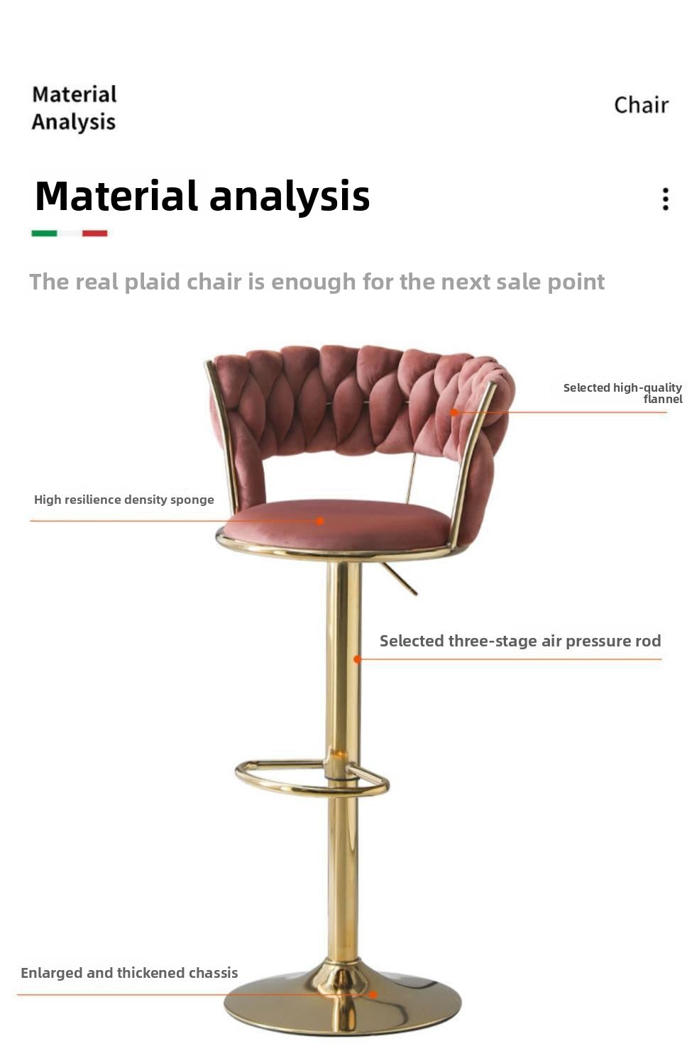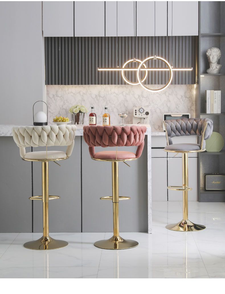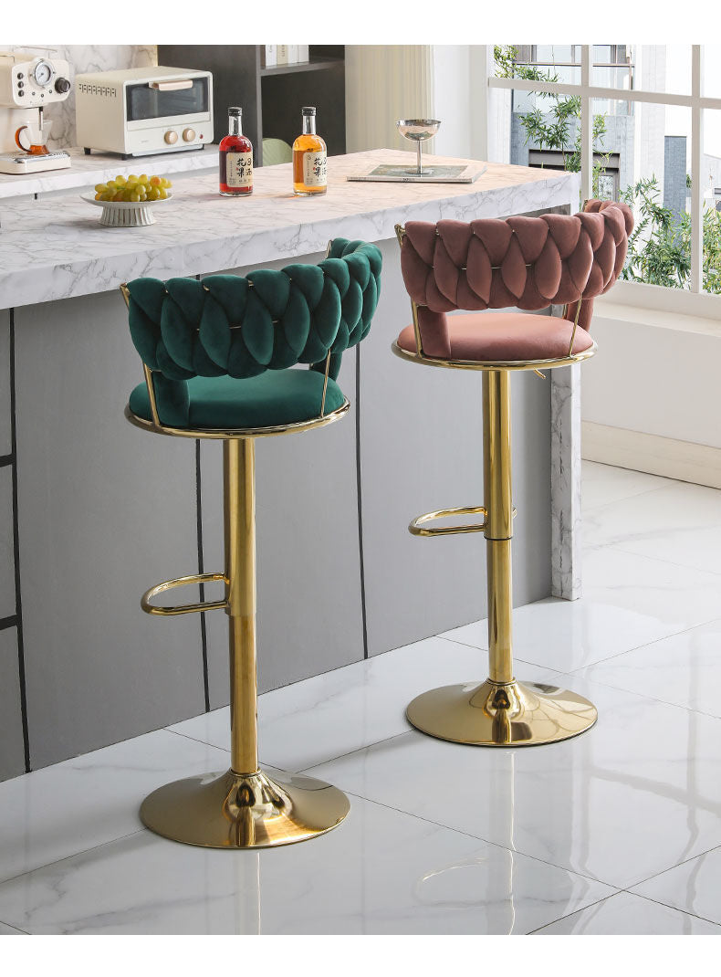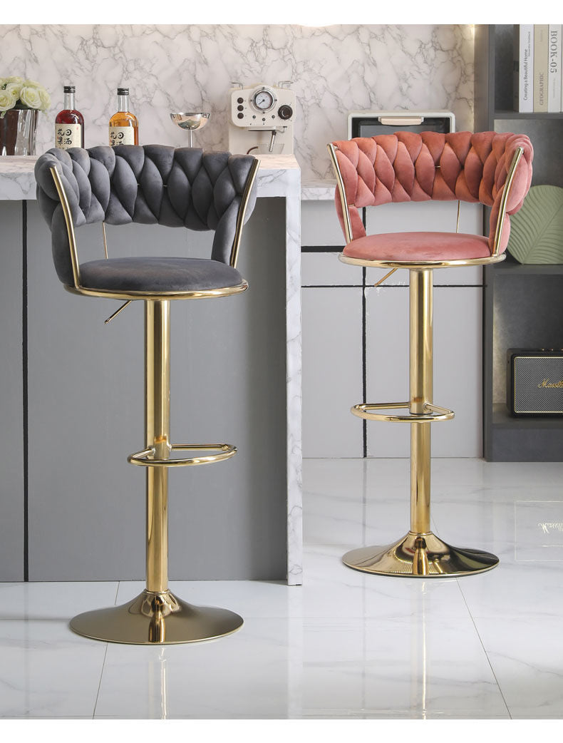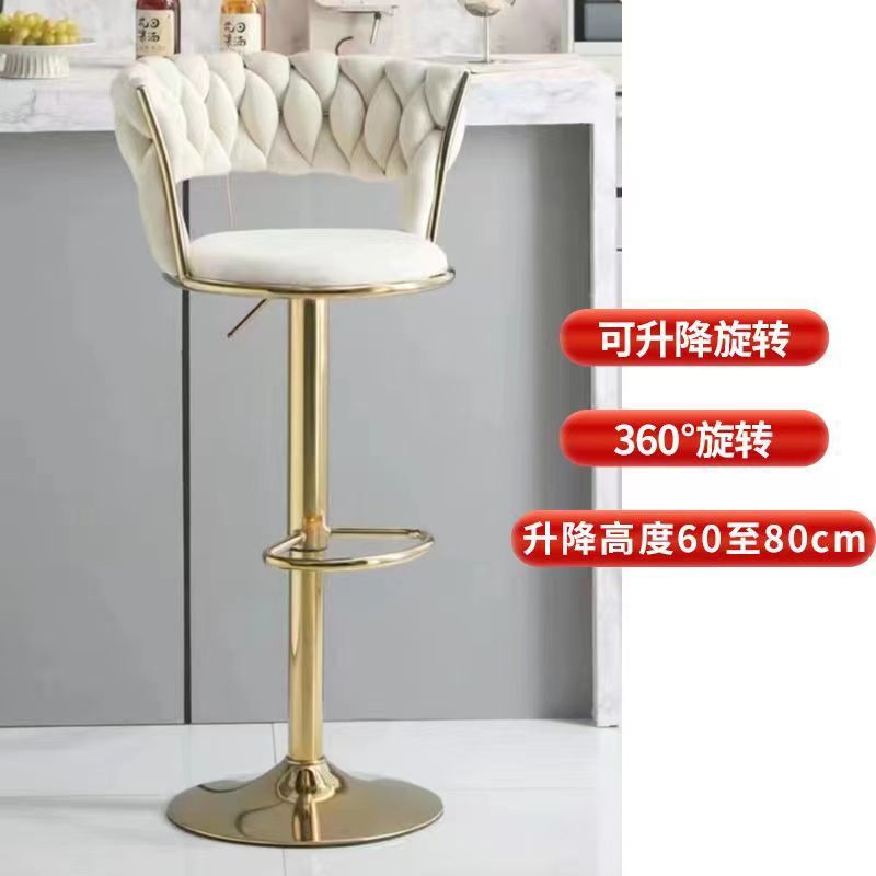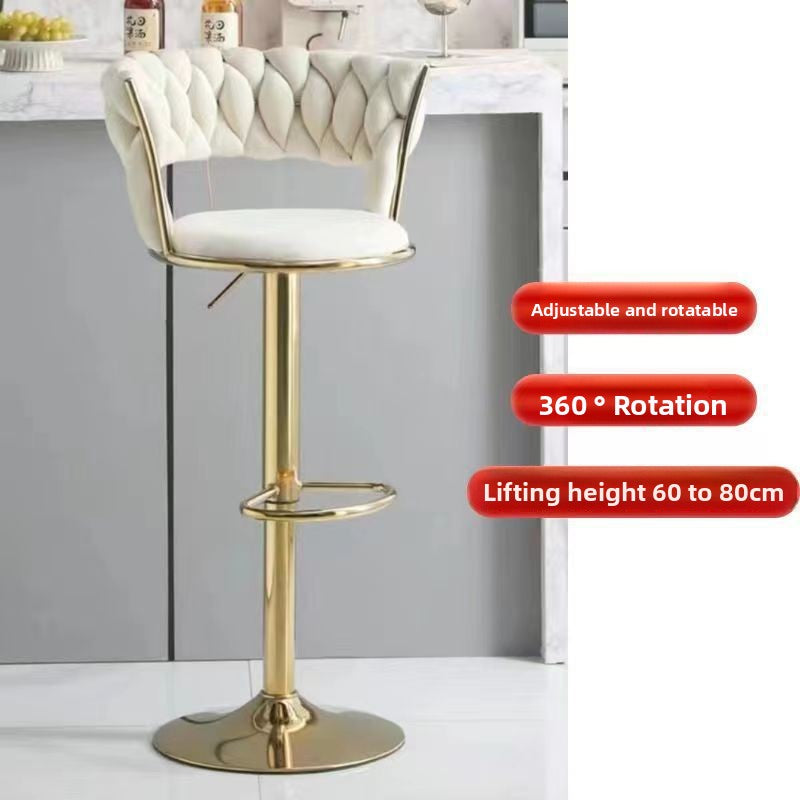 Light Luxury Bar Stool Adjustable Rotating Home Use Backrest High Stool Simple Creative Bar Chair Internet Celebrity Woven Chair