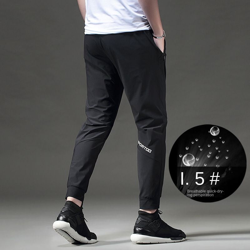 Lightweight Ice Silk Sports Pants Men's Loose Ankle-Tied Quick-Drying Pocket Zipper Sweatpants Training Casual Fitness Pants Fashion