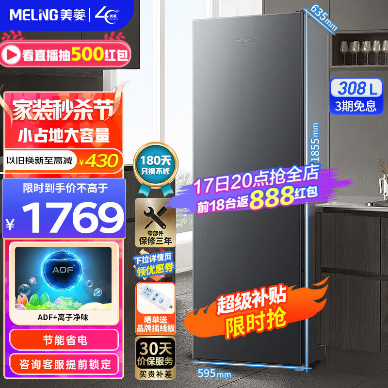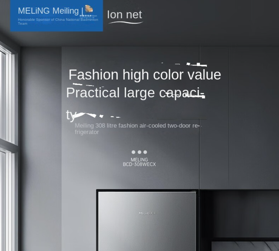 Meiling [Ion Net] 306/308 Liters Double Door Two Door Two Door Rental Household Small Refrigerator Air Cooling Frostless Double Cycle Dormitory Rental Preferred Quick-Freezing Large Capacity Refrigerator