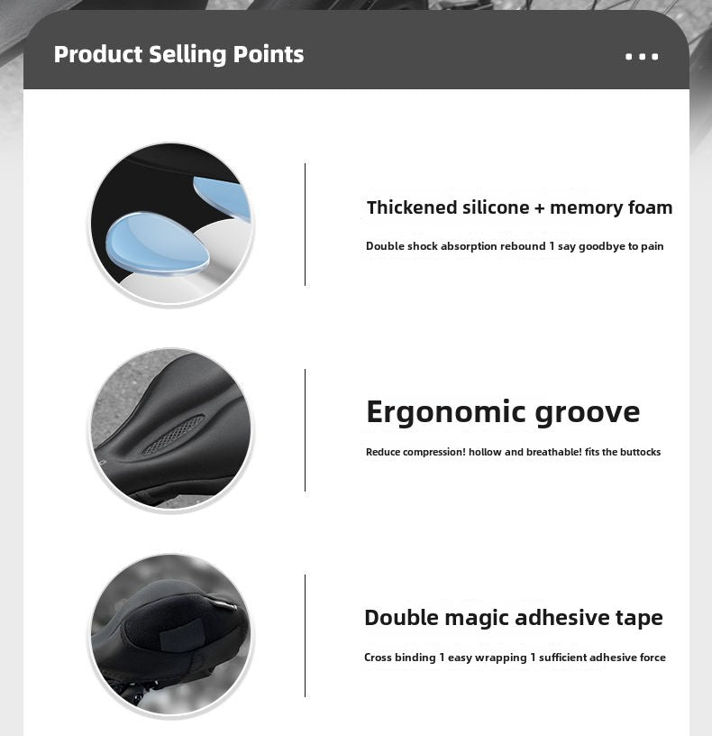 [Memory Foam Filling] Bicycle Cushion Cover Super Soft Seat Cover Silicone Seat Comfortable Soft Seat Cushion Thickened Universal Mountain Highway Seat