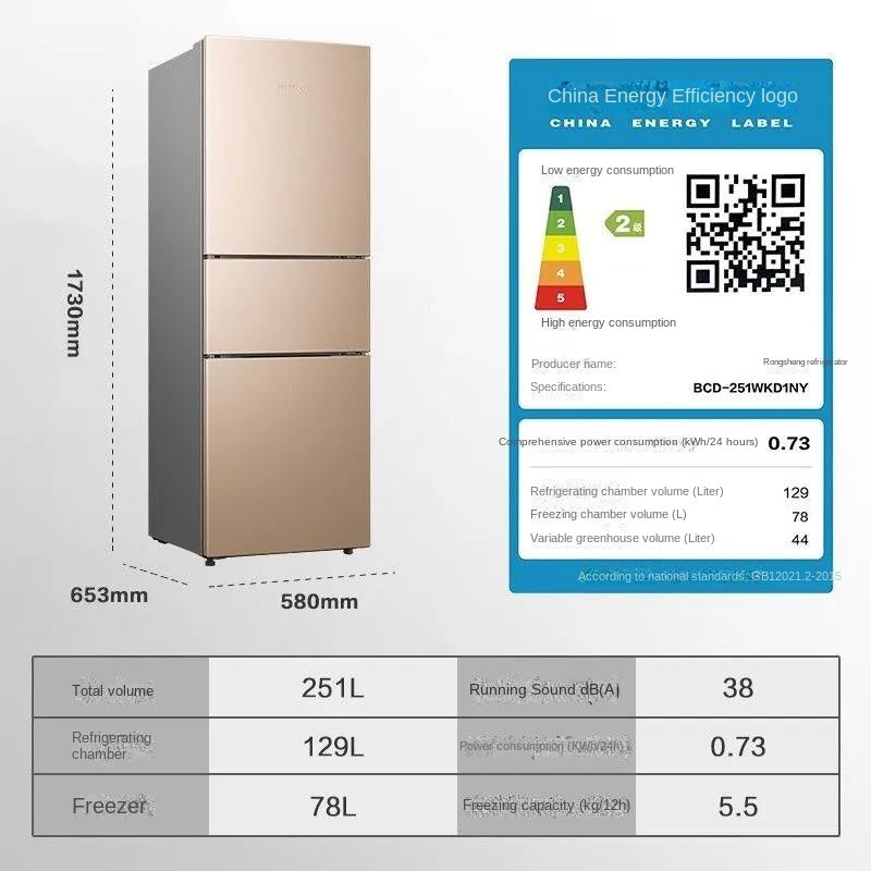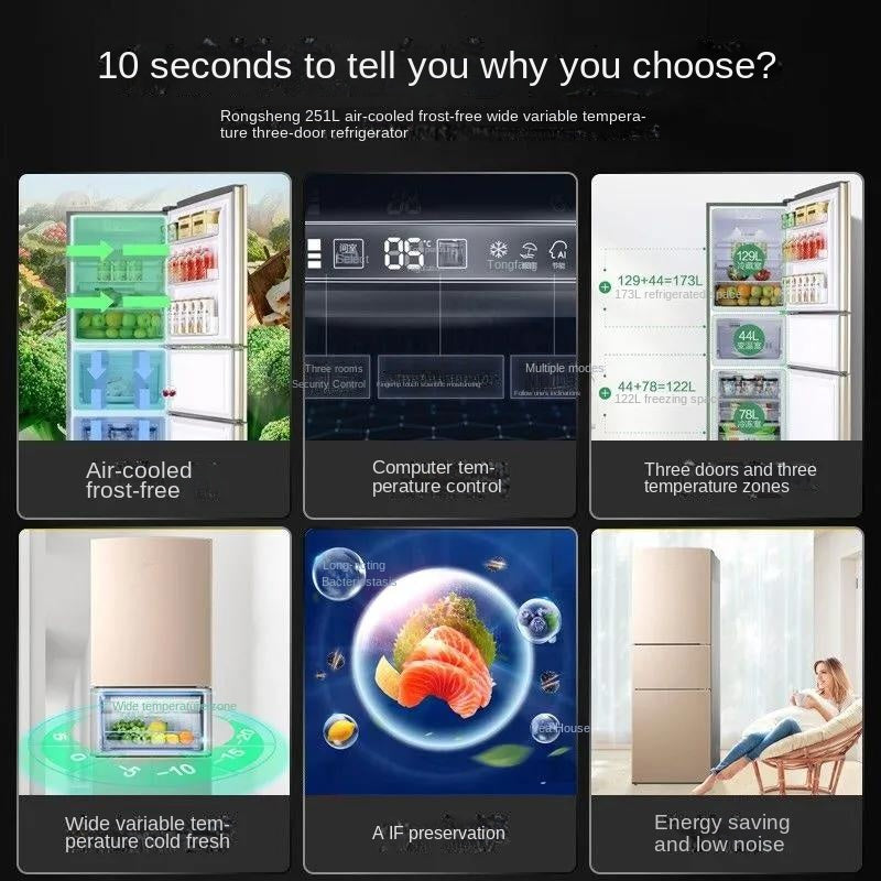Ronshen Refrigerator 251L 3 doors no frost BCD-251WKD1NY