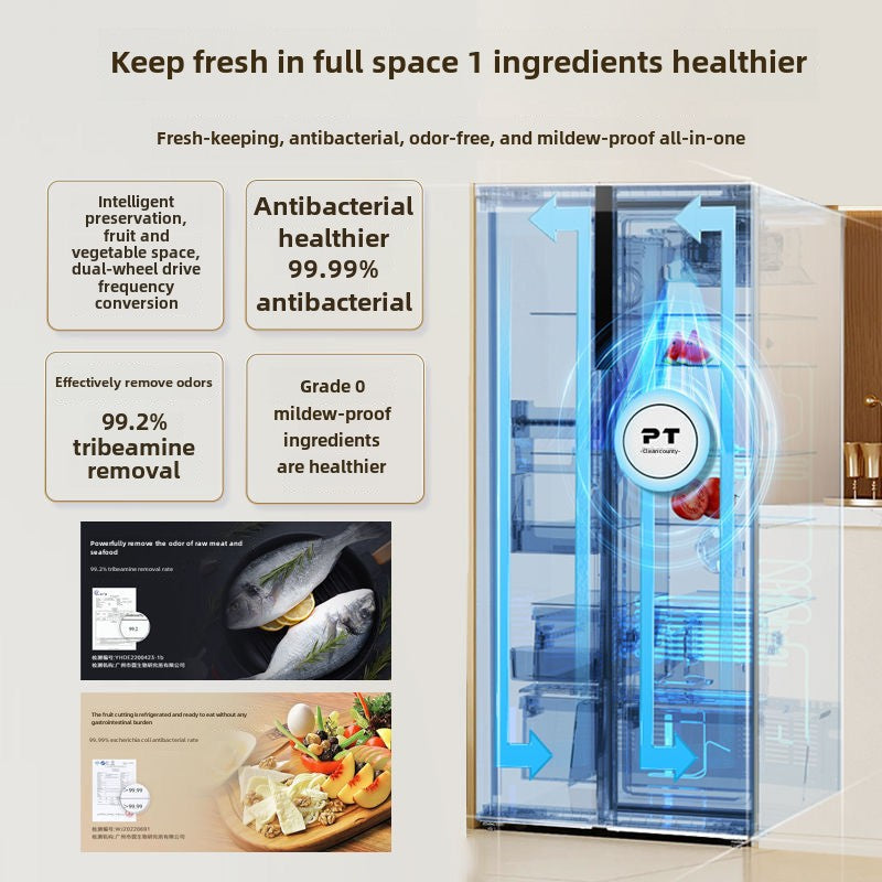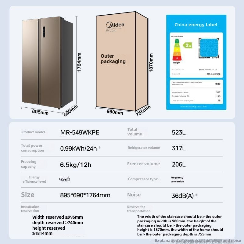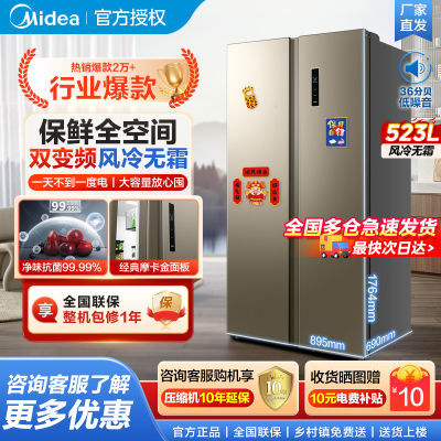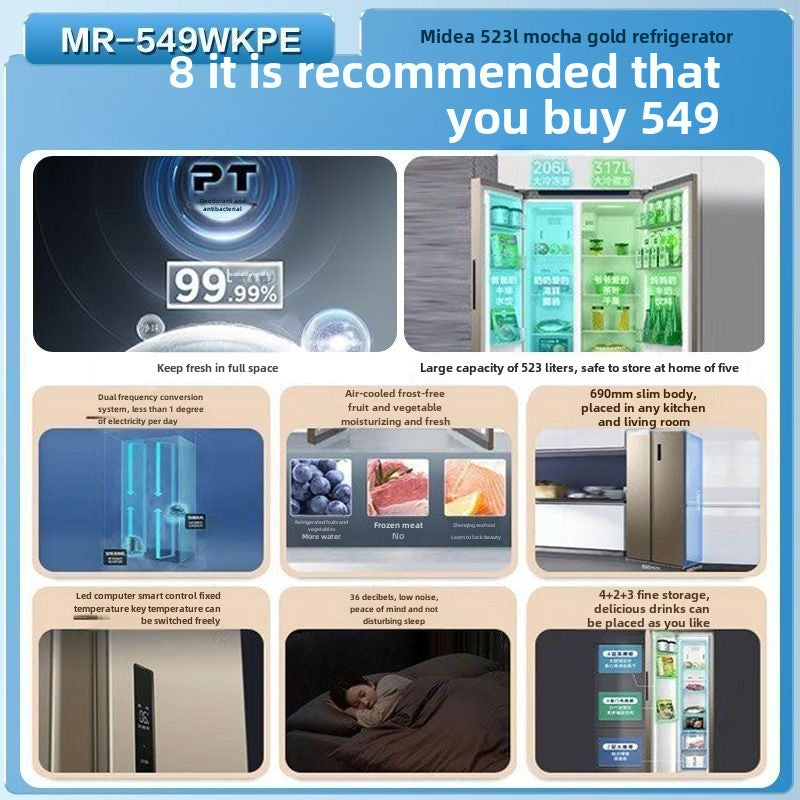 Color: Midea Refrigerator 523L Double Frequency Conversion Energy Saving Intelligent Antibacterial Pure Odor Air Cooling Frostless Double Door Large Capacity Refrigerator