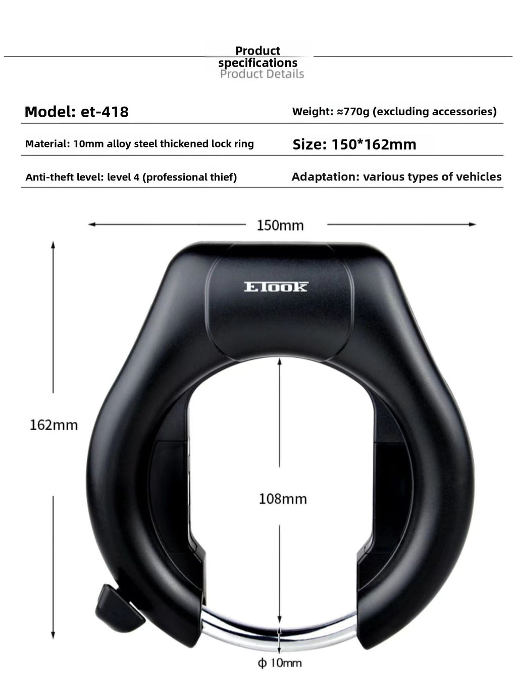 ETOOK Bicycle Lock Crab Claw Lock Horseshoe Lock Mountain Bike Road Bike Universal Anti-theft Strong Alloy Frame U-shaped Lock