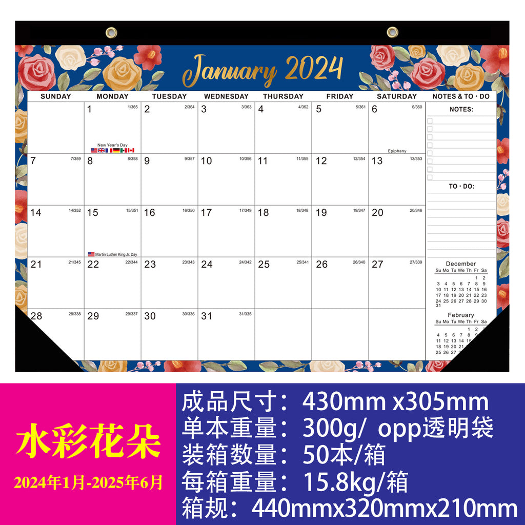 New 2024 English Calendar Amazon Wall Calendar 18 One Countdown English Desktop Simple Desk Calendar