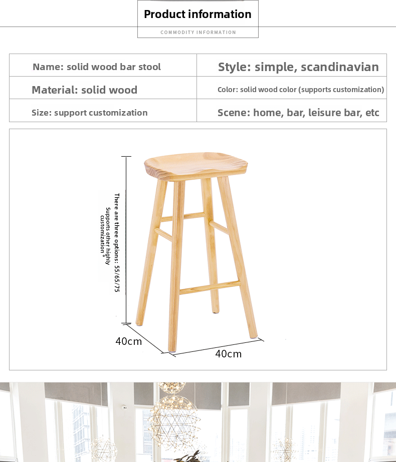 Nordic Bar Stool Simple Bar Chair Bar Stool Bar Chair Solid Wood Home Chair Swivel Chair High Factory Direct Supply High Foot