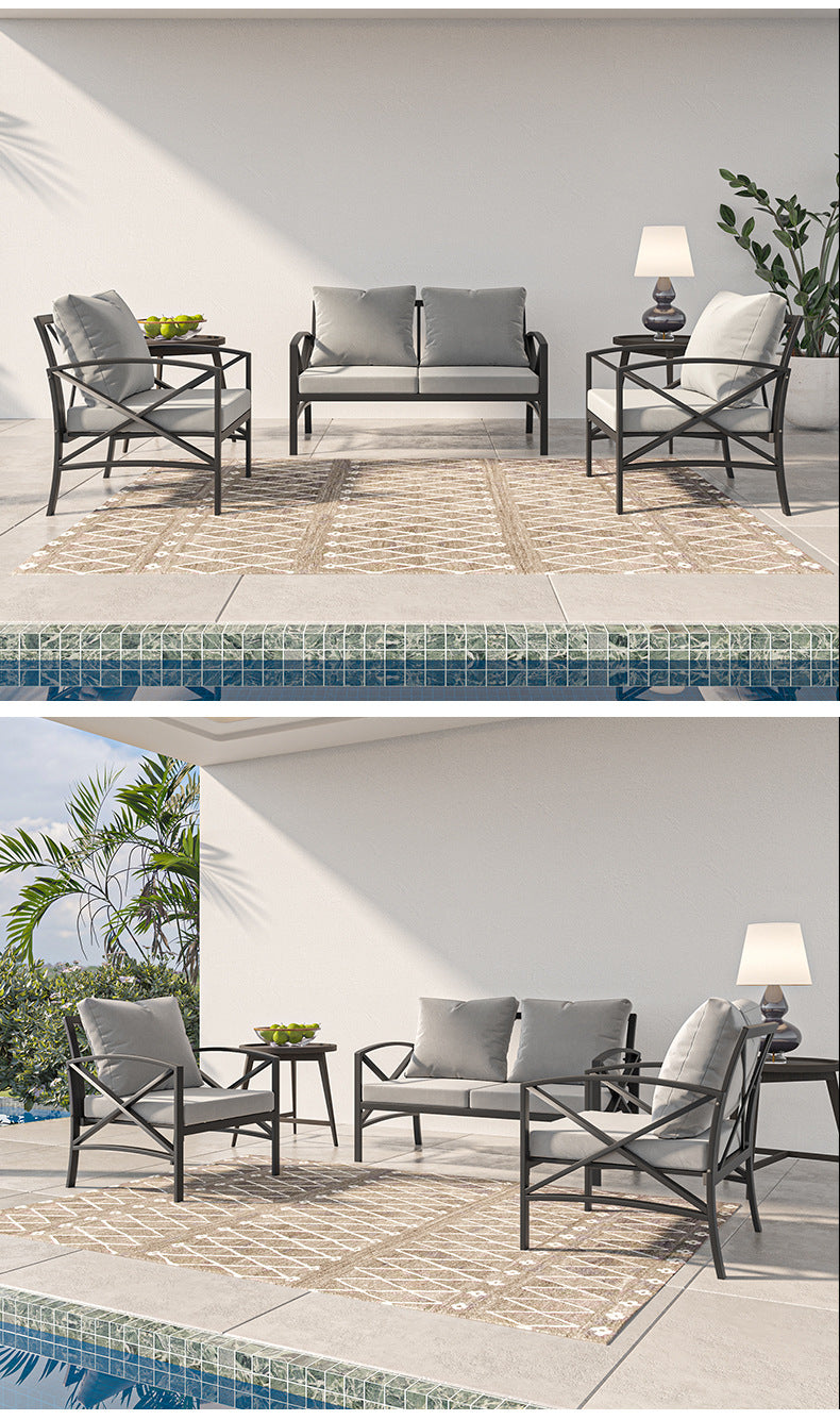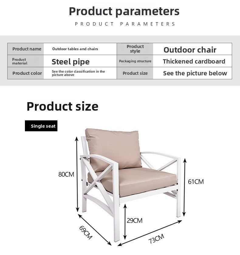 Outdoor Leisure Iron Art Sofa Set Garden Hotel Business Reception Sofa Waterproof Industrial Style Iron Frame Chair