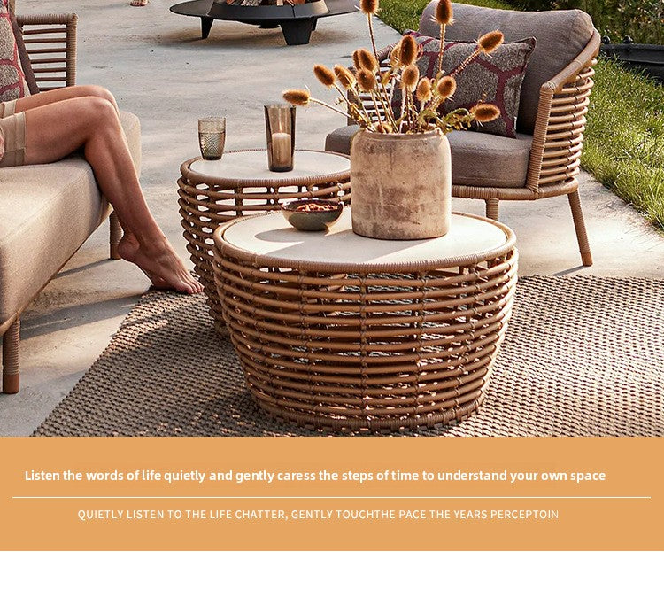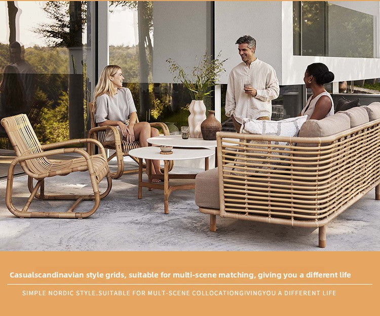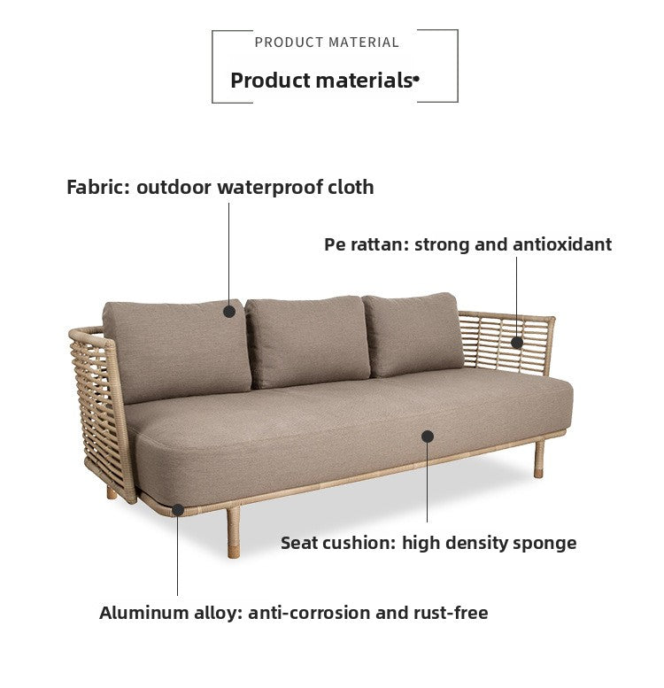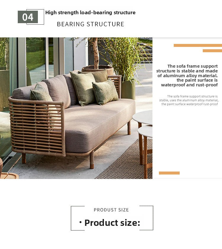 Outdoor Rattan Sofa Courtyard Leisure Outdoor Balcony Rattan Chair Sunproof Waterproof Homestay Sunroom Combination Furniture