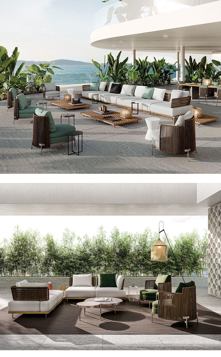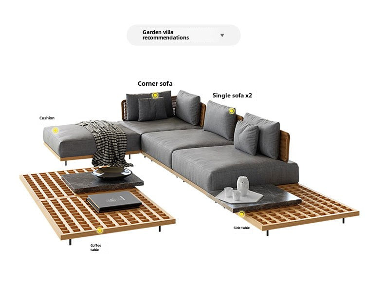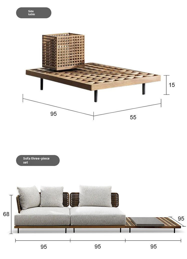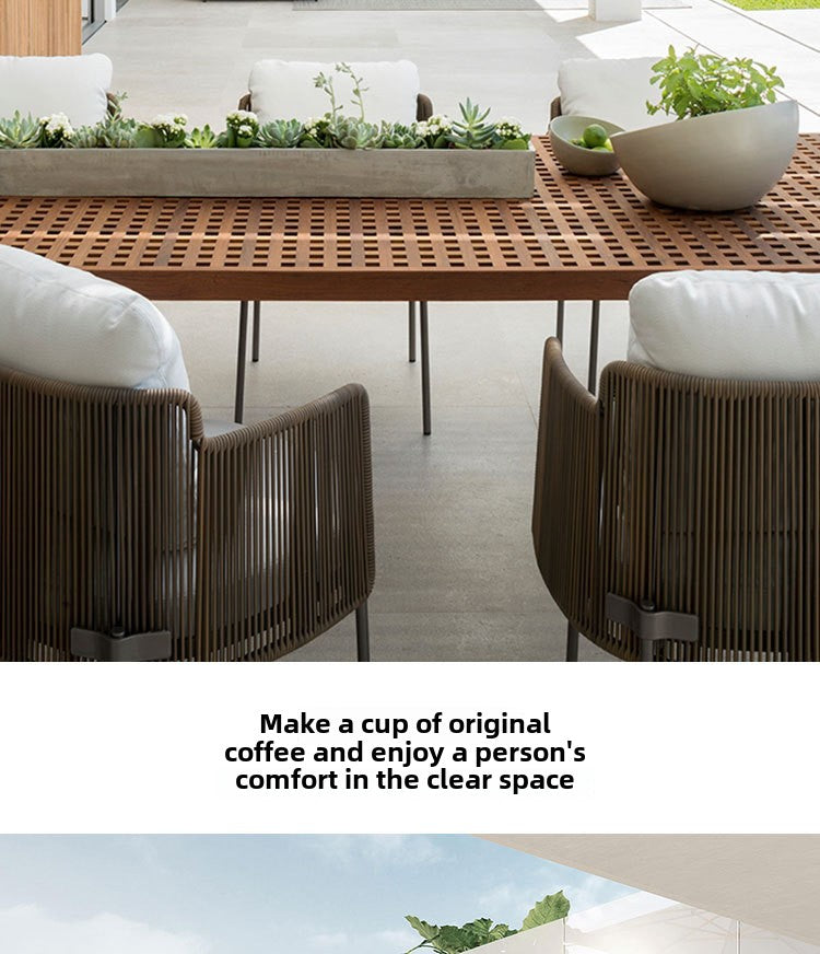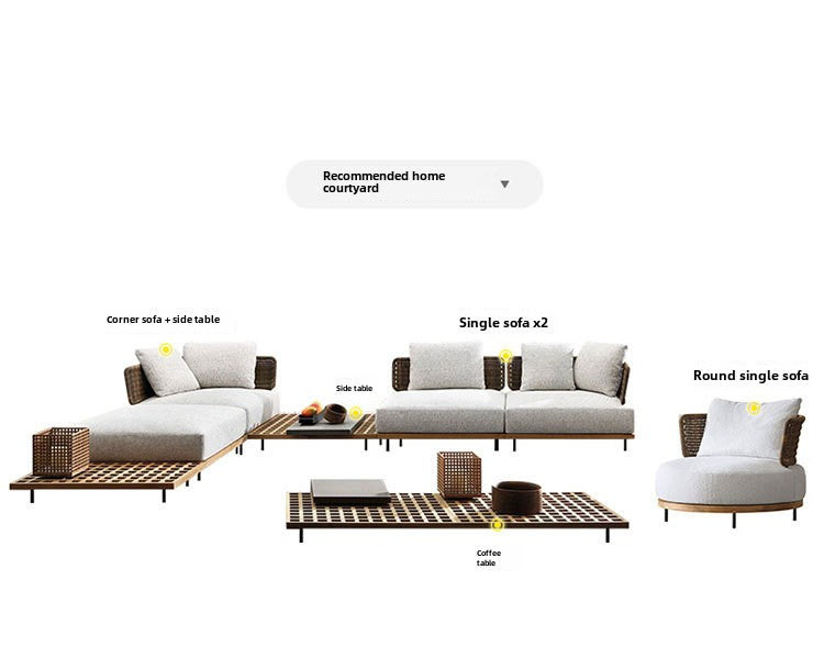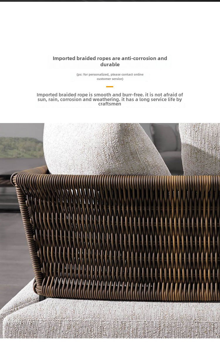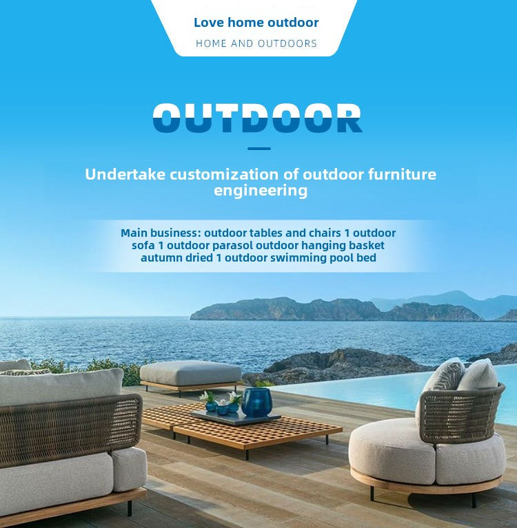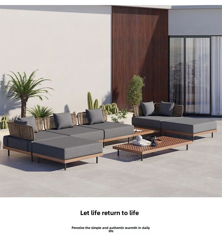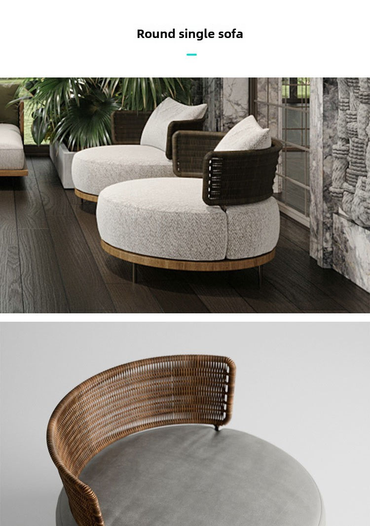 Outdoor Rattan Sofa Courtyard Nordic Solid Wood Garden Balcony Leisure Art Rattan Chair Combination Outdoor Rattan Furniture