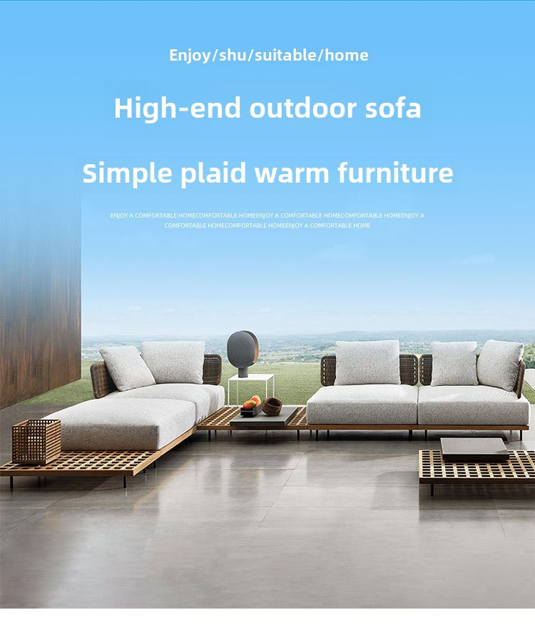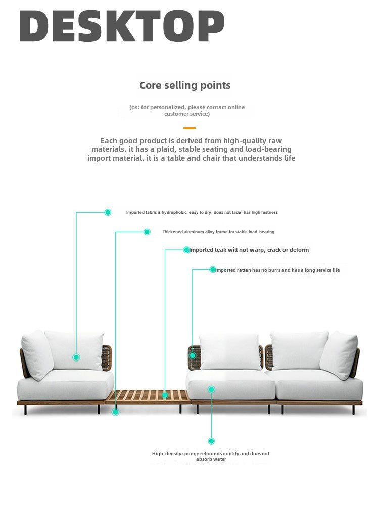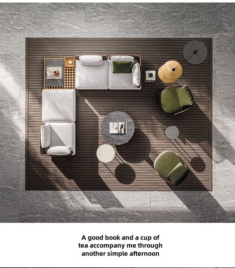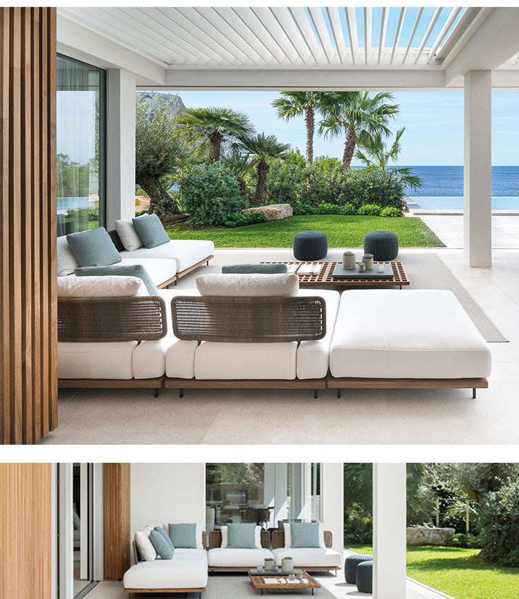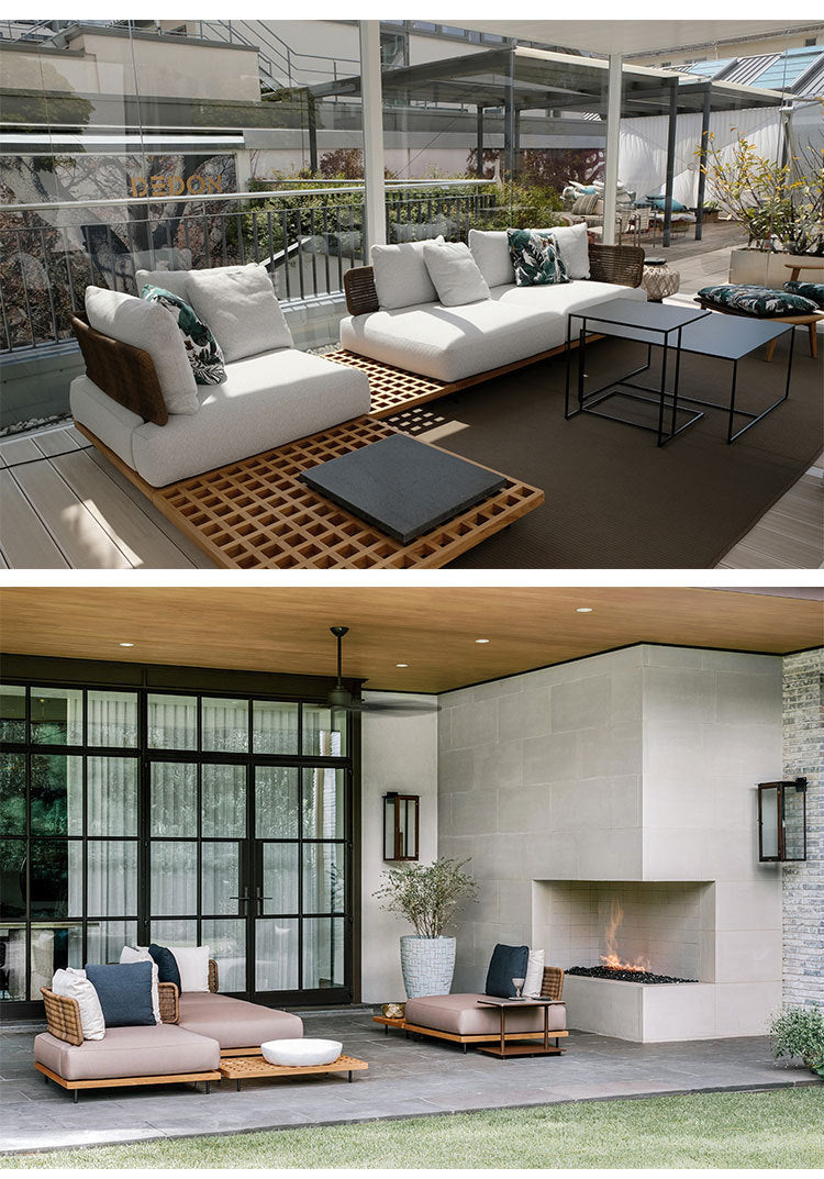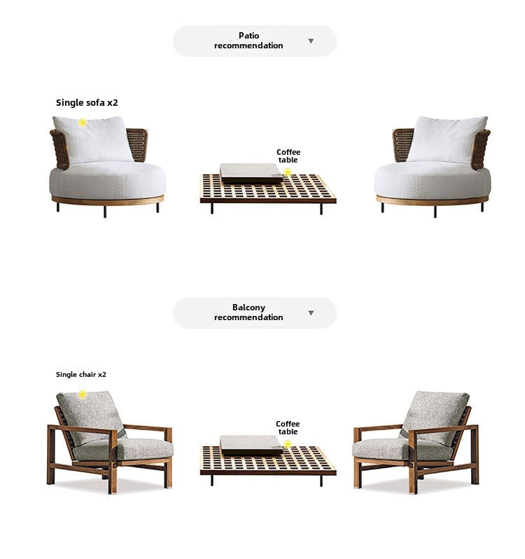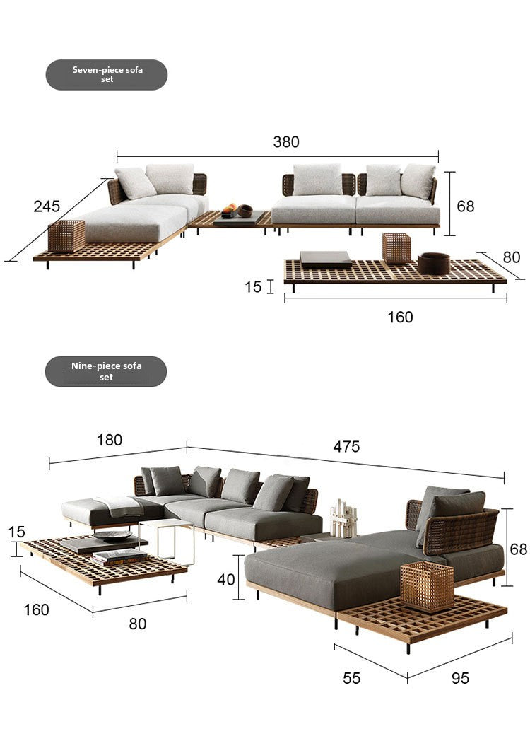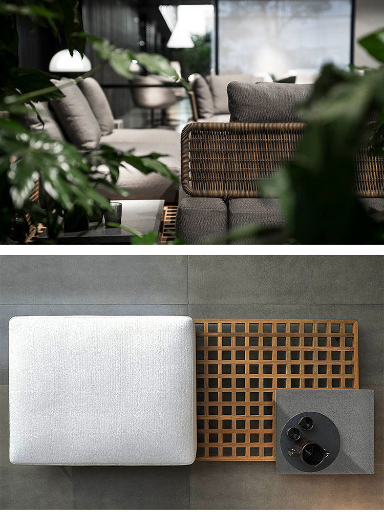 Outdoor Rattan Sofa Courtyard Nordic Solid Wood Garden Balcony Leisure Art Rattan Chair Combination Outdoor Rattan Furniture