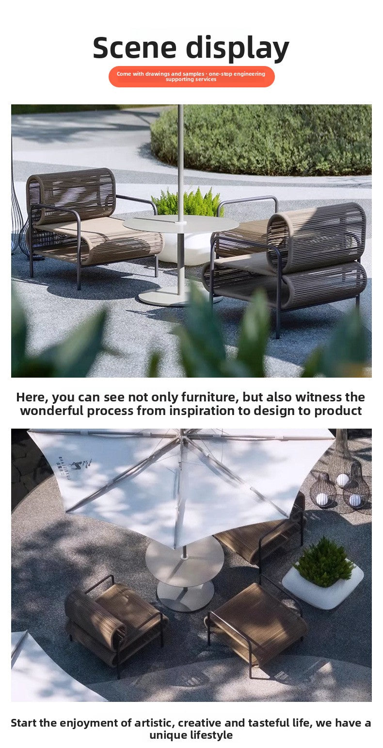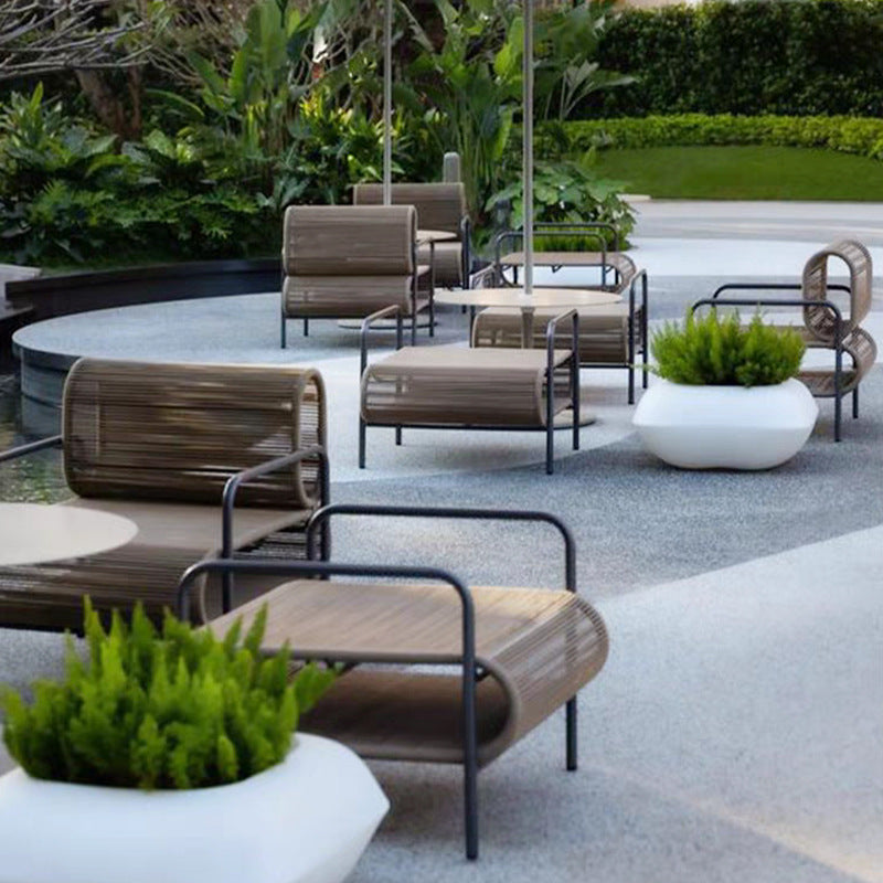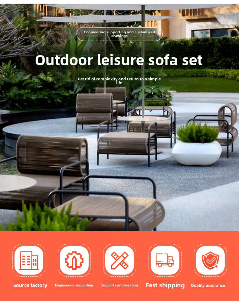 Outdoor Sofa and Coffee Table Set Waterproof Sunproof for Open Air B&B Garden Courtyard Villa Balcony Leisure Rattan Sofa