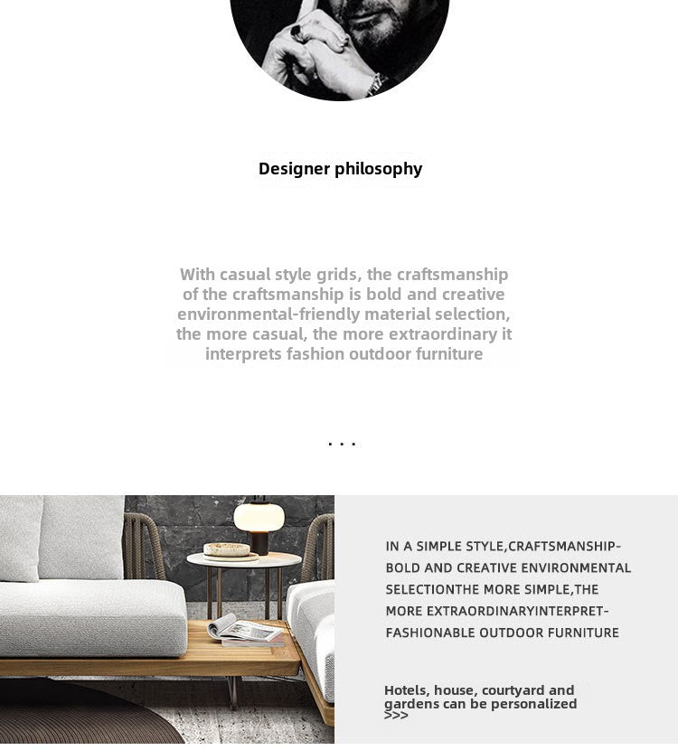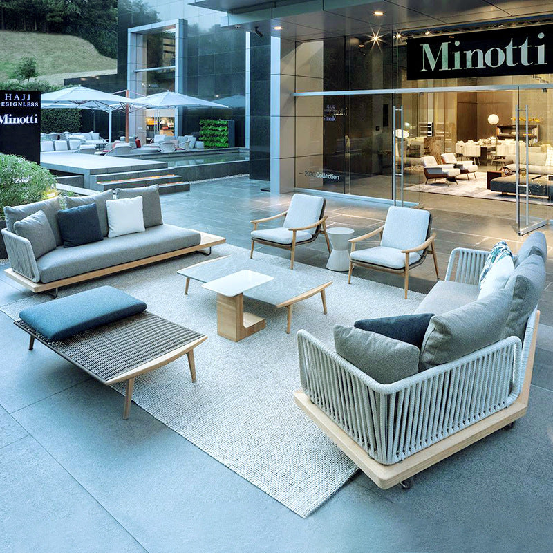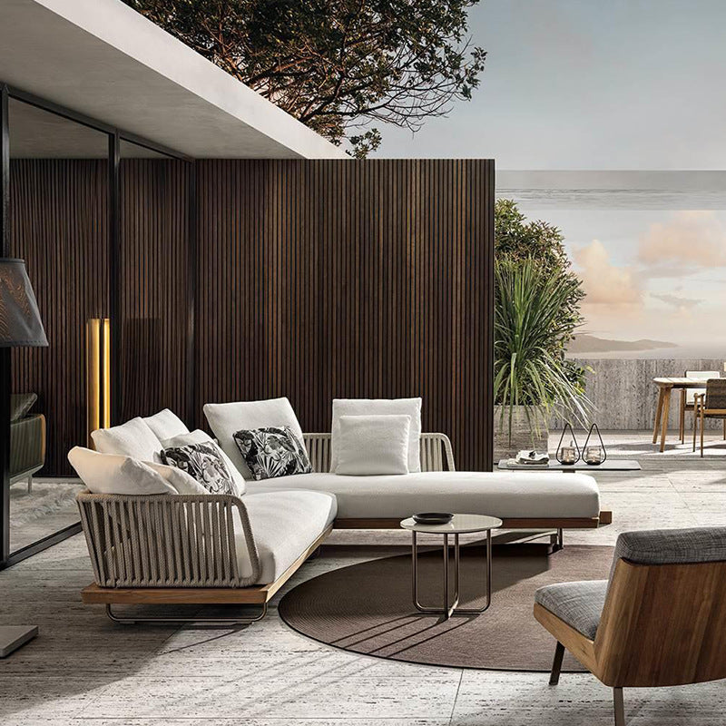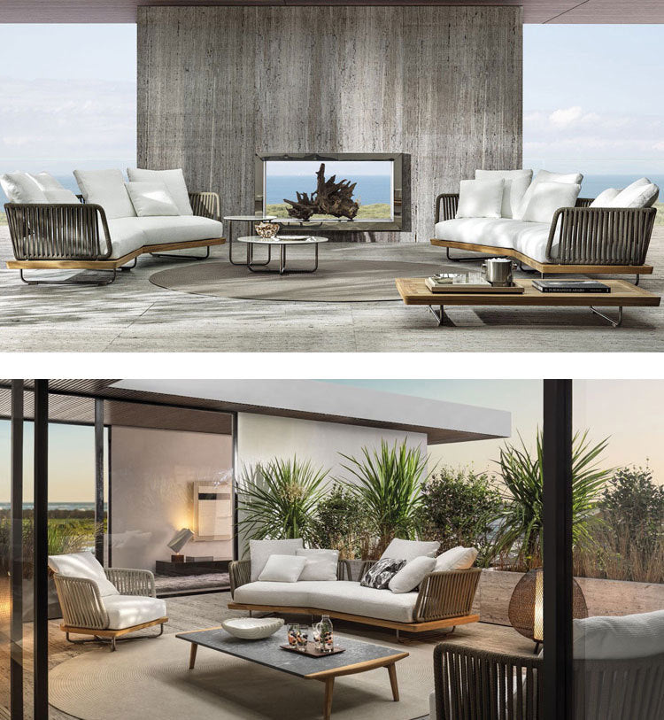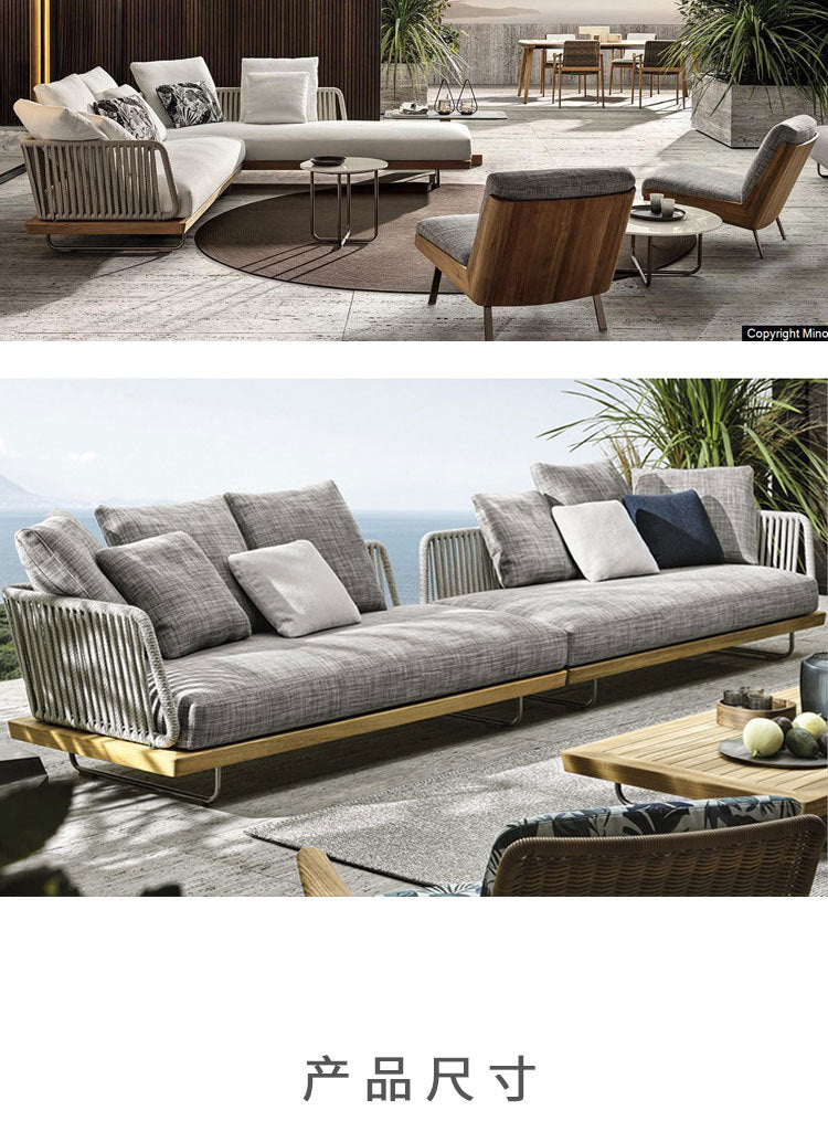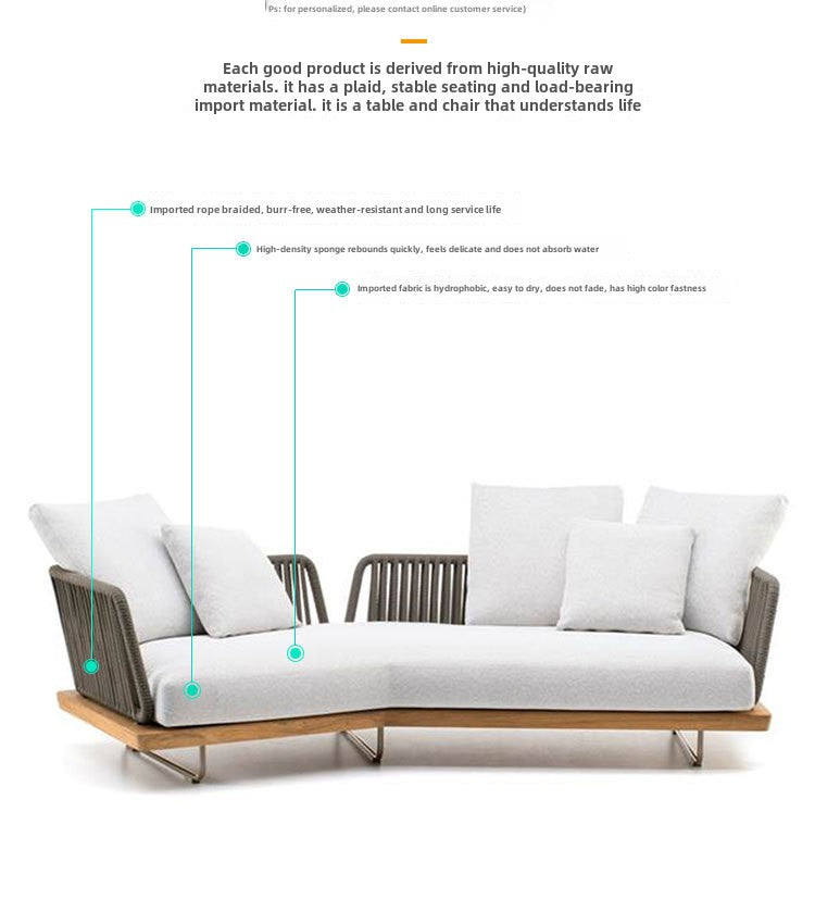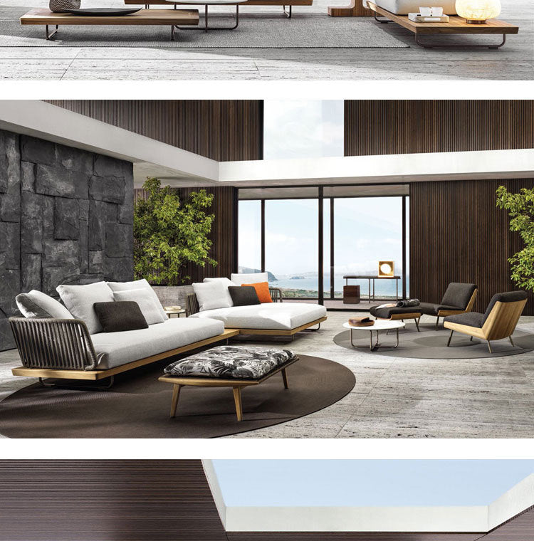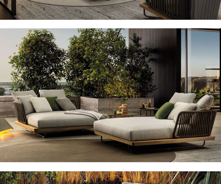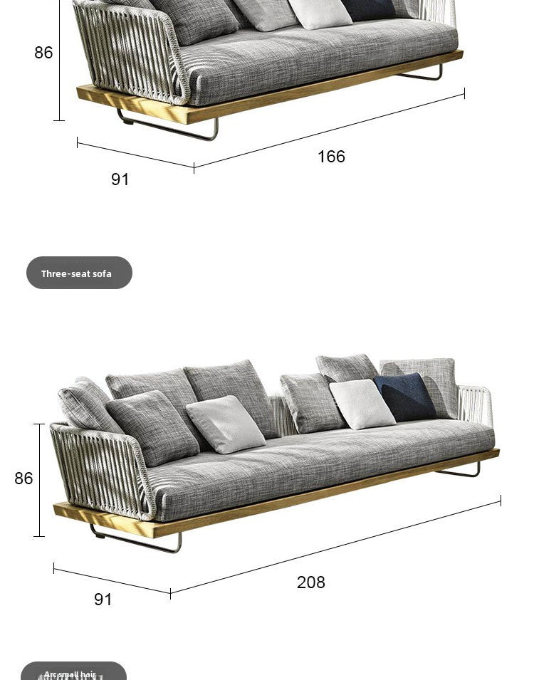 Outdoor Sofa Courtyard Sunscreen and Waterproof Rattan Chair Outdoor Terrace Garden Rattan Teak Furniture Balcony Leisure Combination