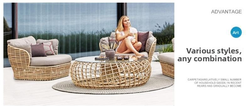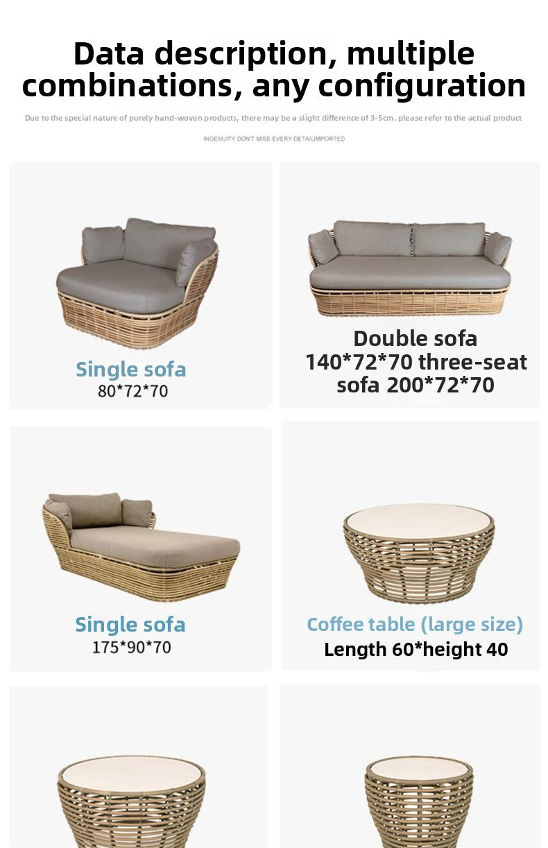 Outdoor Sofa Set for Courtyard, Hotel Terrace, Villa, Homestay, Leisure Rattan Chair, Waterproof and Sunproof Rattan Furniture