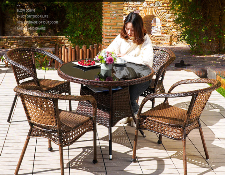 Included : 4 chairs+ 1x 90cm round table