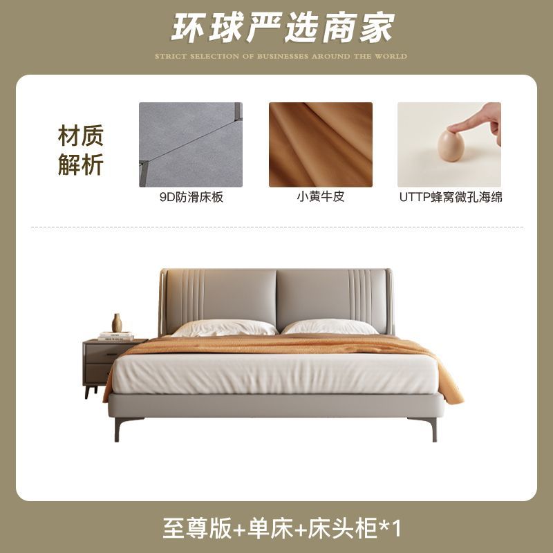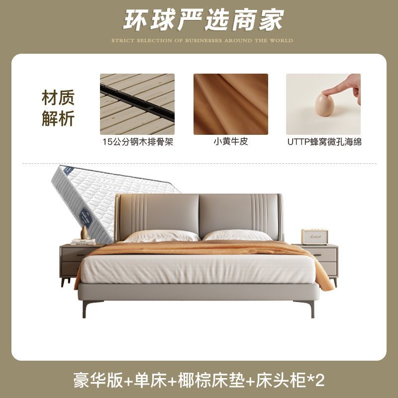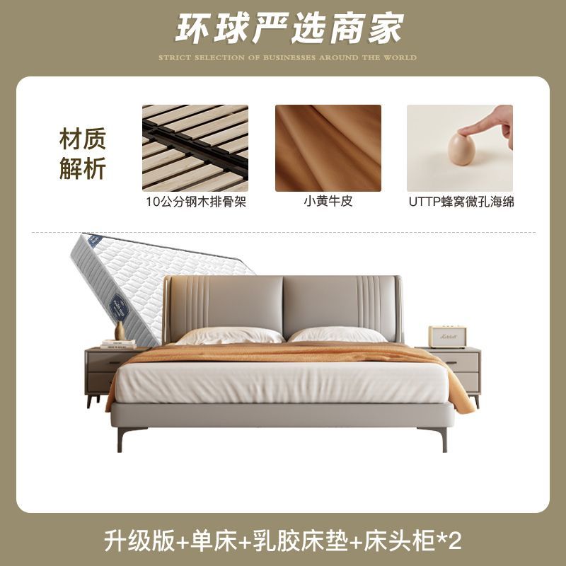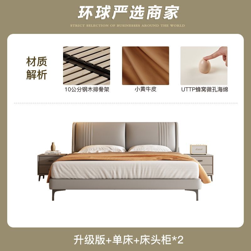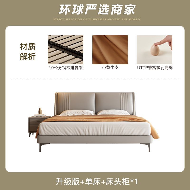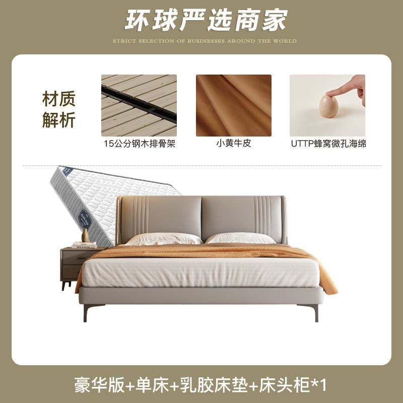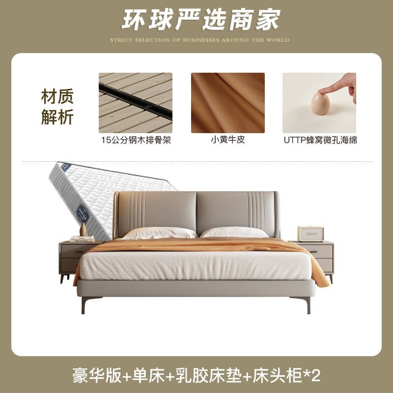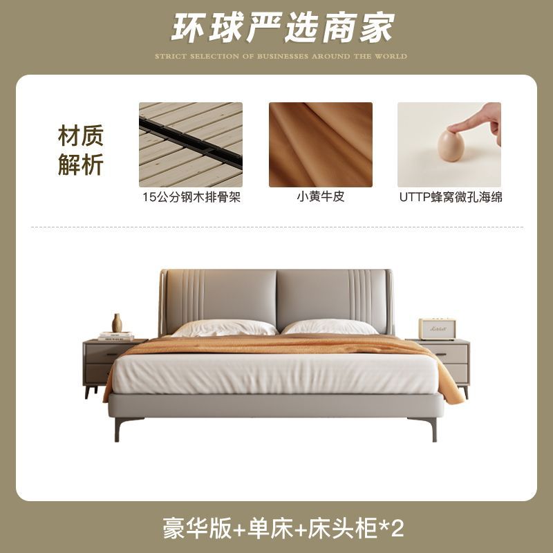 Ruoxing Cream Style Leather Bed Double Bed Modern Simple Home Function Small Yellow Cowhide Light Luxury Marriage Bed Safe Box