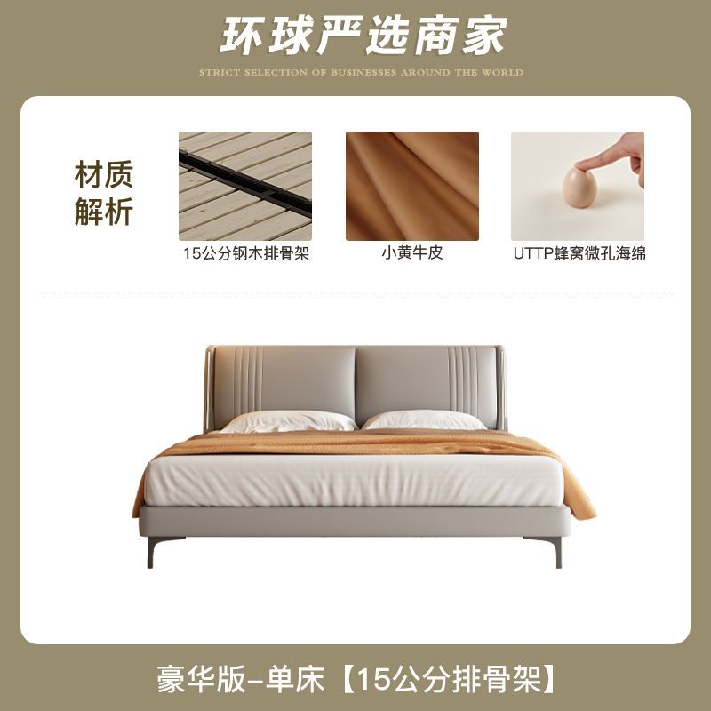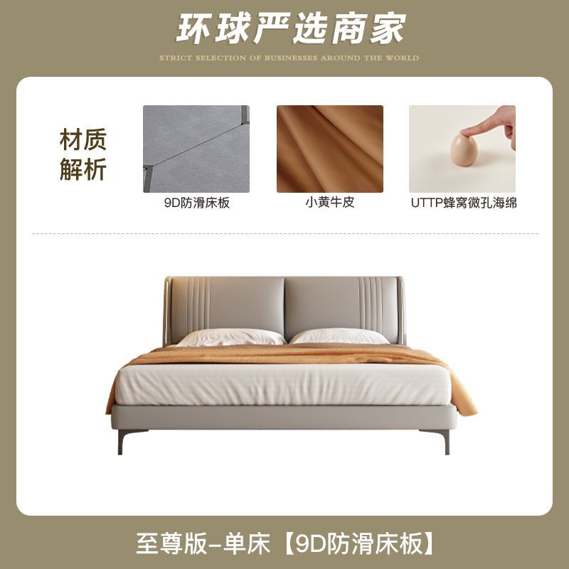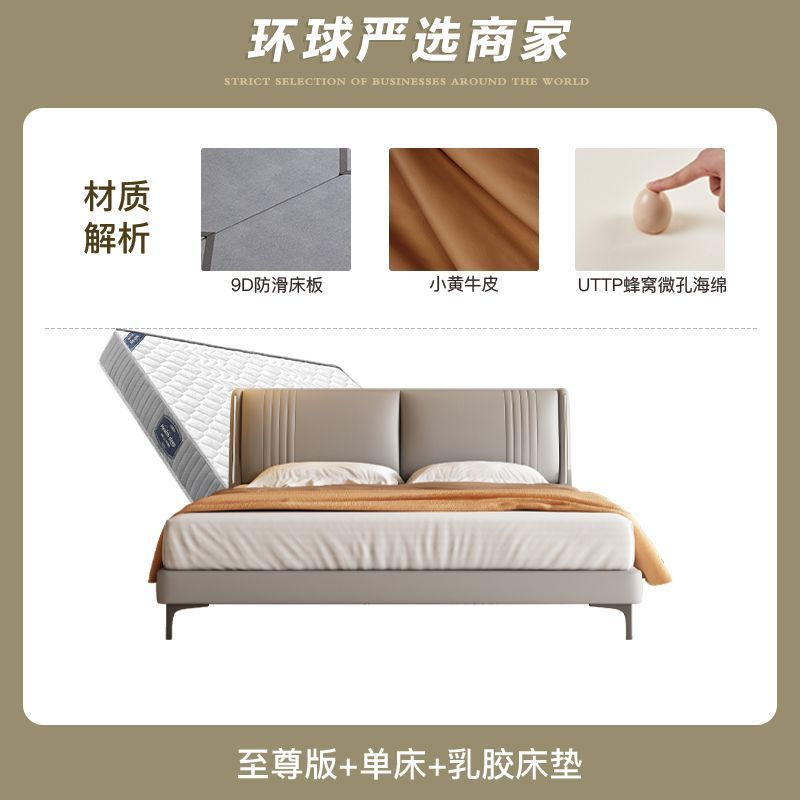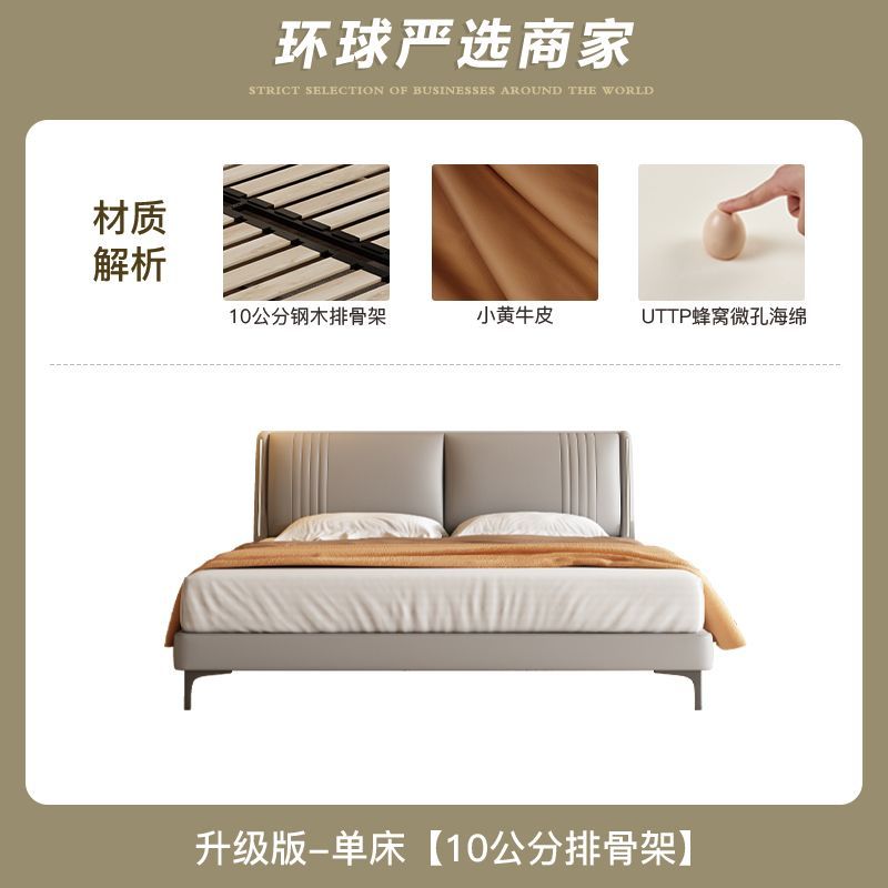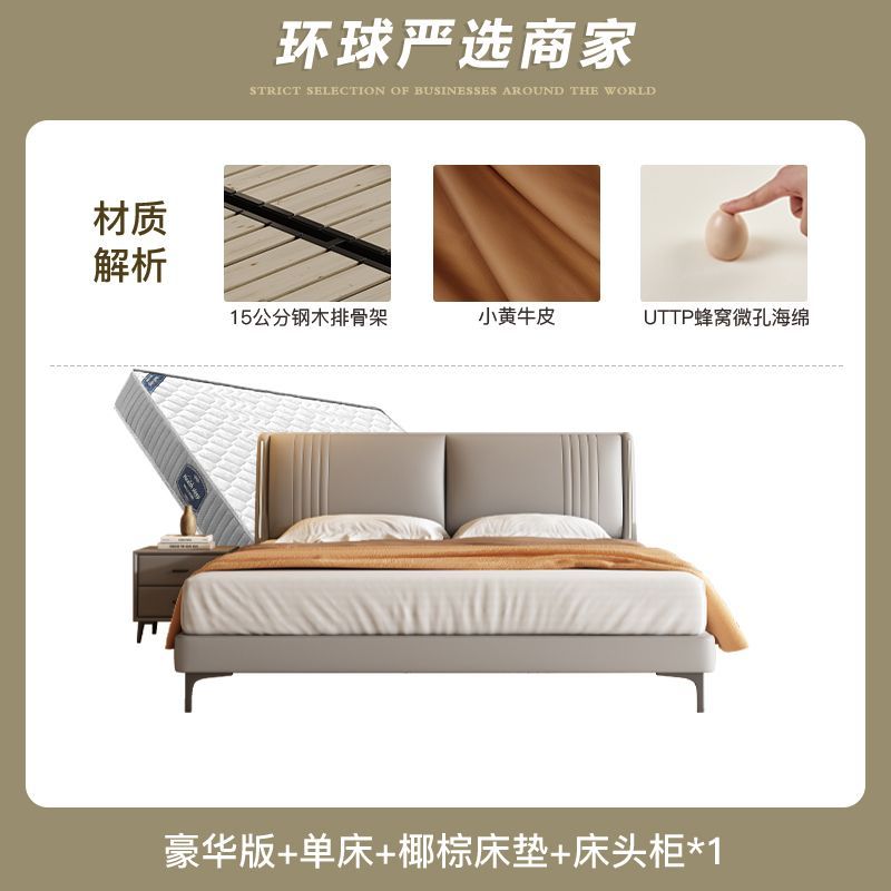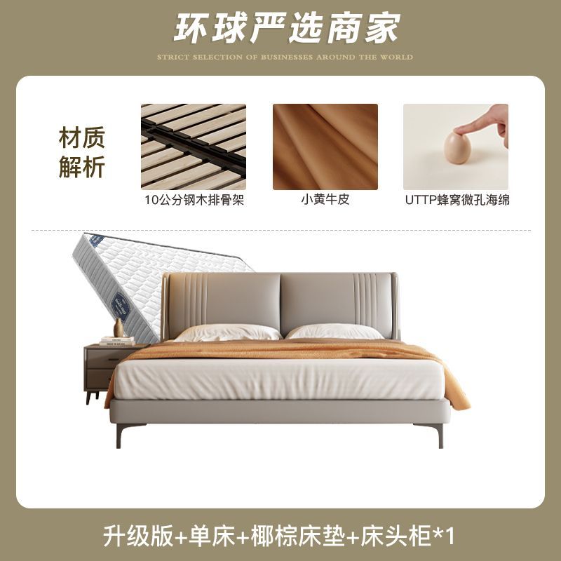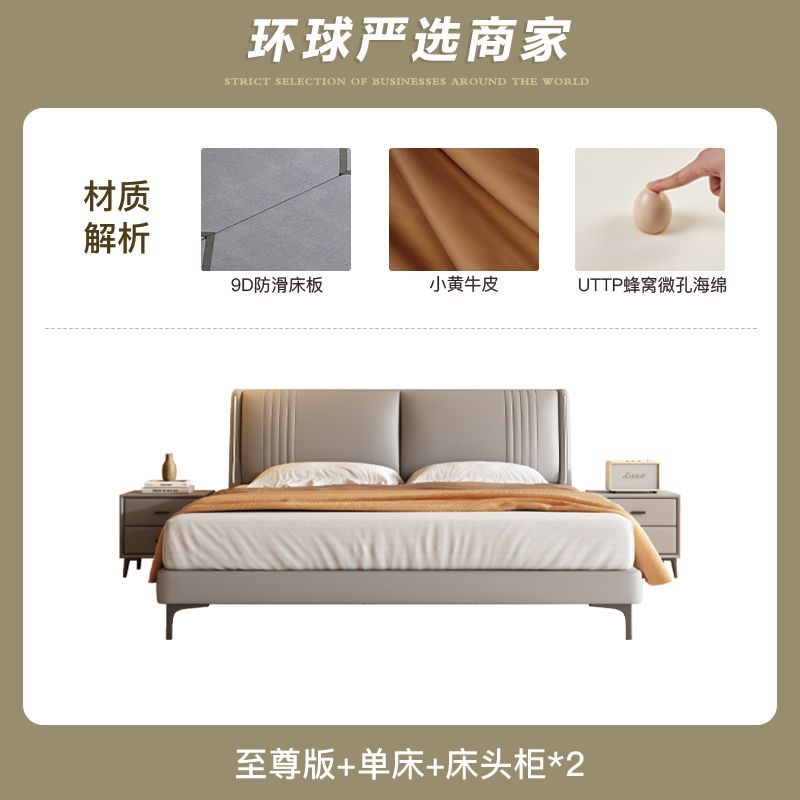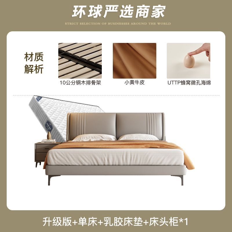 Ruoxing Cream Style Leather Bed Double Bed Modern Simple Home Function Small Yellow Cowhide Light Luxury Marriage Bed Safe Box