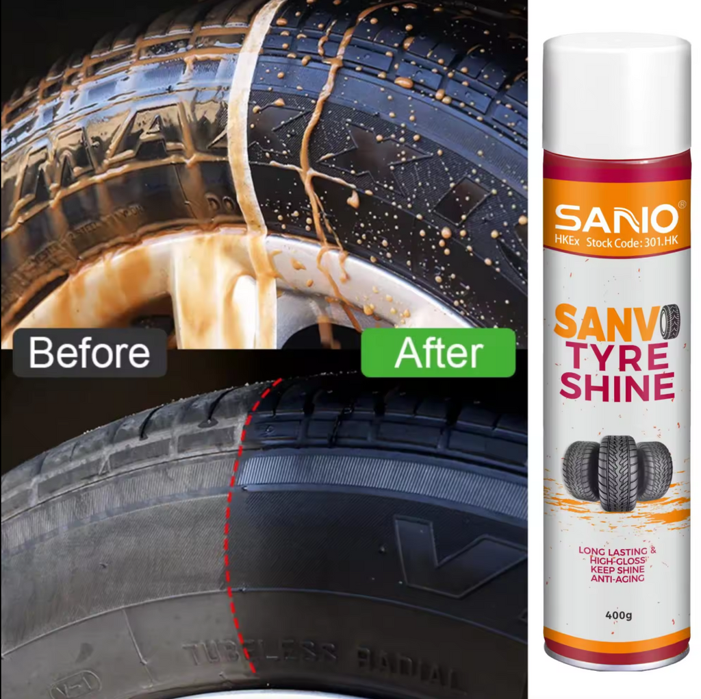 SANVO Tire Foam Cleaner Aeropak Foaming Tyre Care contains a macromolecule ingredient that penetrates, to remove road grime, brake dust, dirt, film, and grease. Foaming Tyre Care provides long lasting protection and rejuvenate browning and aging tyres and is specifically created to leave a spot free finish.