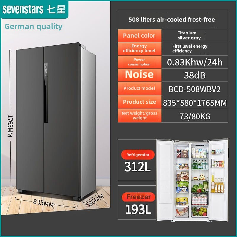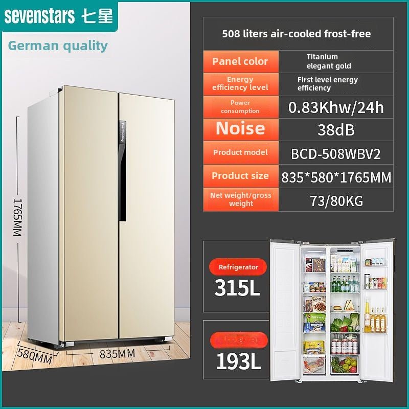 Sevenstrs German Seven-Star 508-Liter Ultra-Thin Box 460-Liter Four-Door Frequency Conversion Air Cooling Frostless Level 1 Refrigerator