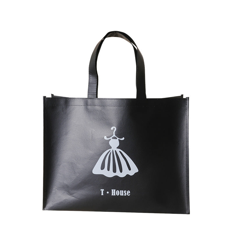 Simple All-Match Film Non-Woven Fabric Handbag Thickened Clothing Store Shopping Bag Custom Advertising Printed Logo