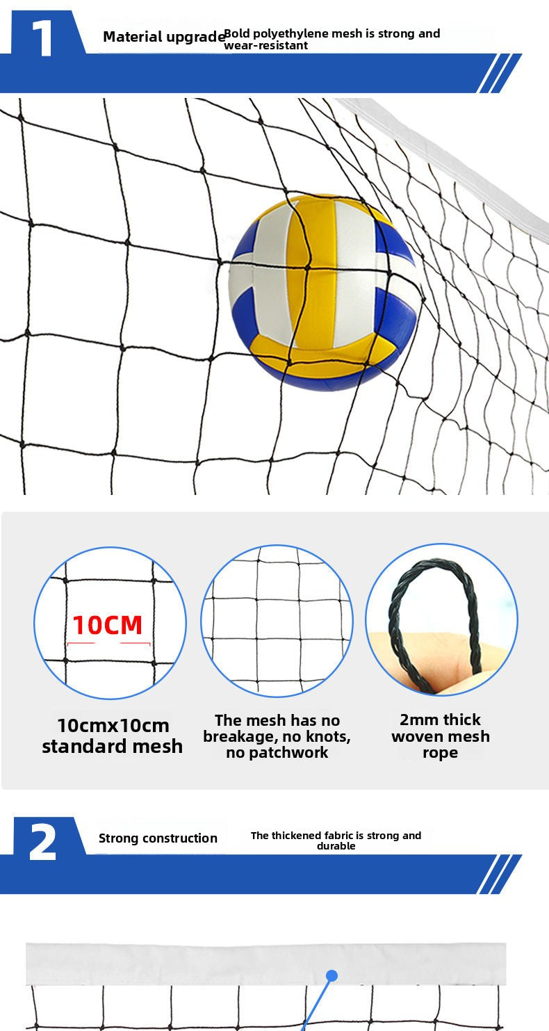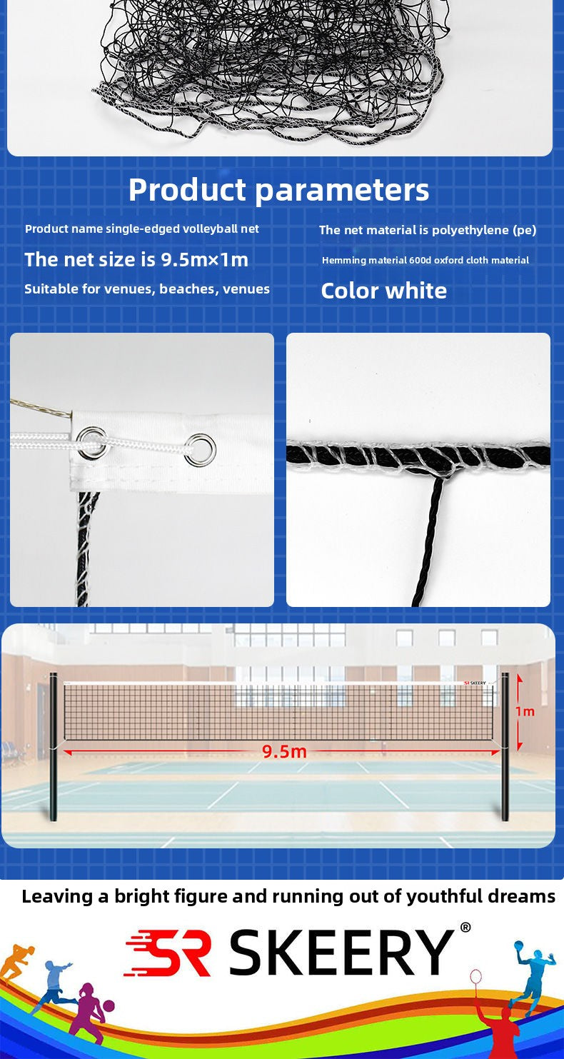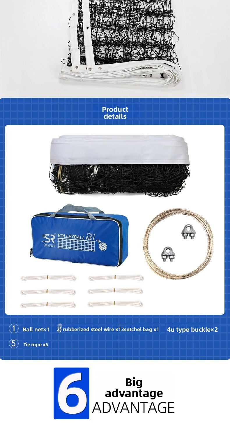Color: Single Edge PE Knotted Volleyball Net + Steel Wire Rope + Carrying Bag