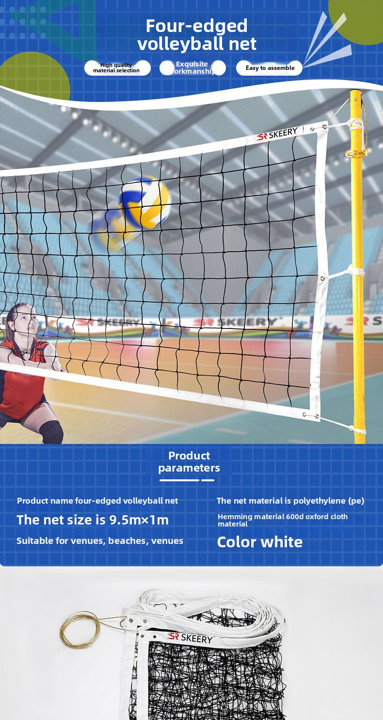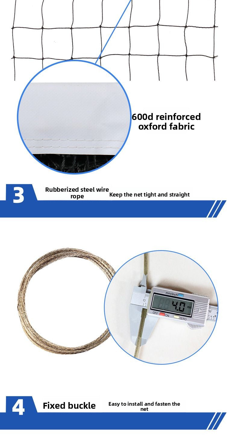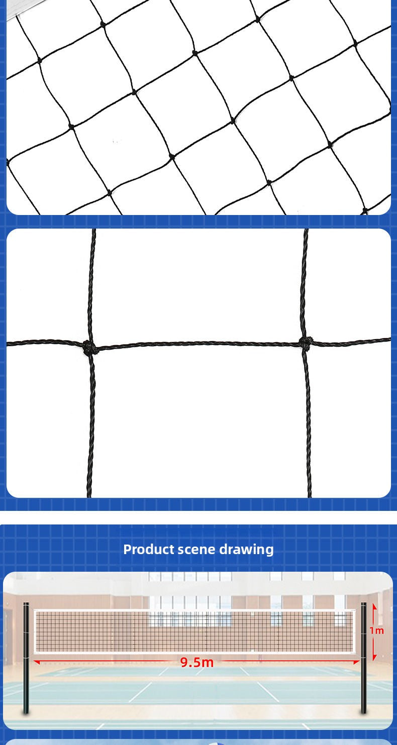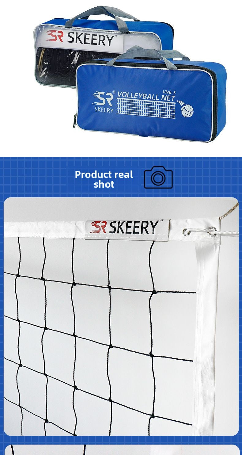 Color: Single Edge PE Knotted Volleyball Net + Steel Wire Rope + Carrying Bag