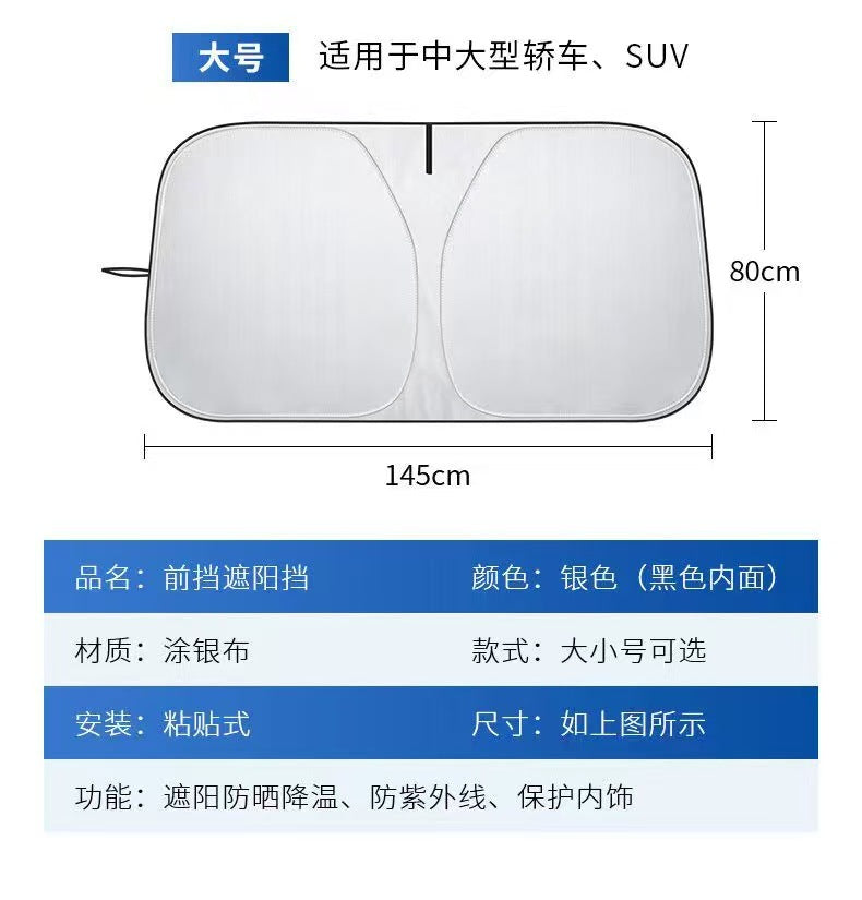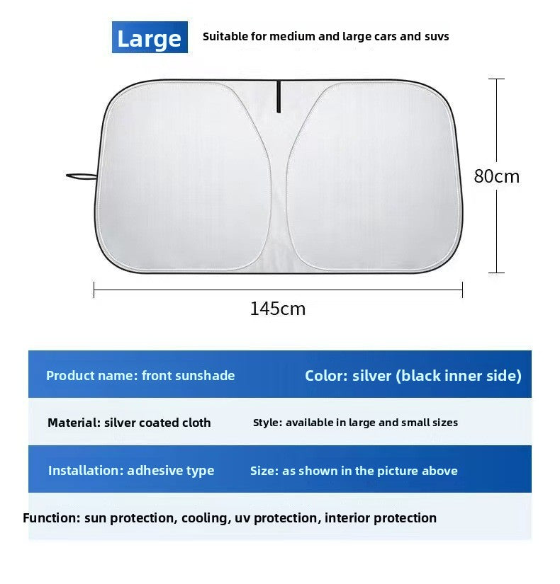 Summer Car Sunshade Silver Coated Cloth Sun Protection Car Heat Insulation Car Interior Anti-Glare Sunshade Curtain Front Sunshade